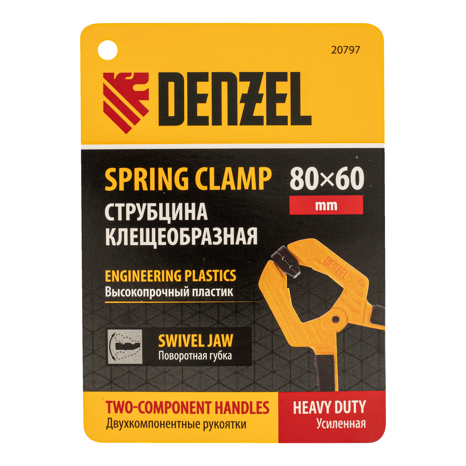 Струбцина клещеобразная, усиленная 80 х 60 мм, двухкомпонентные рукоятки Denzel в Москве