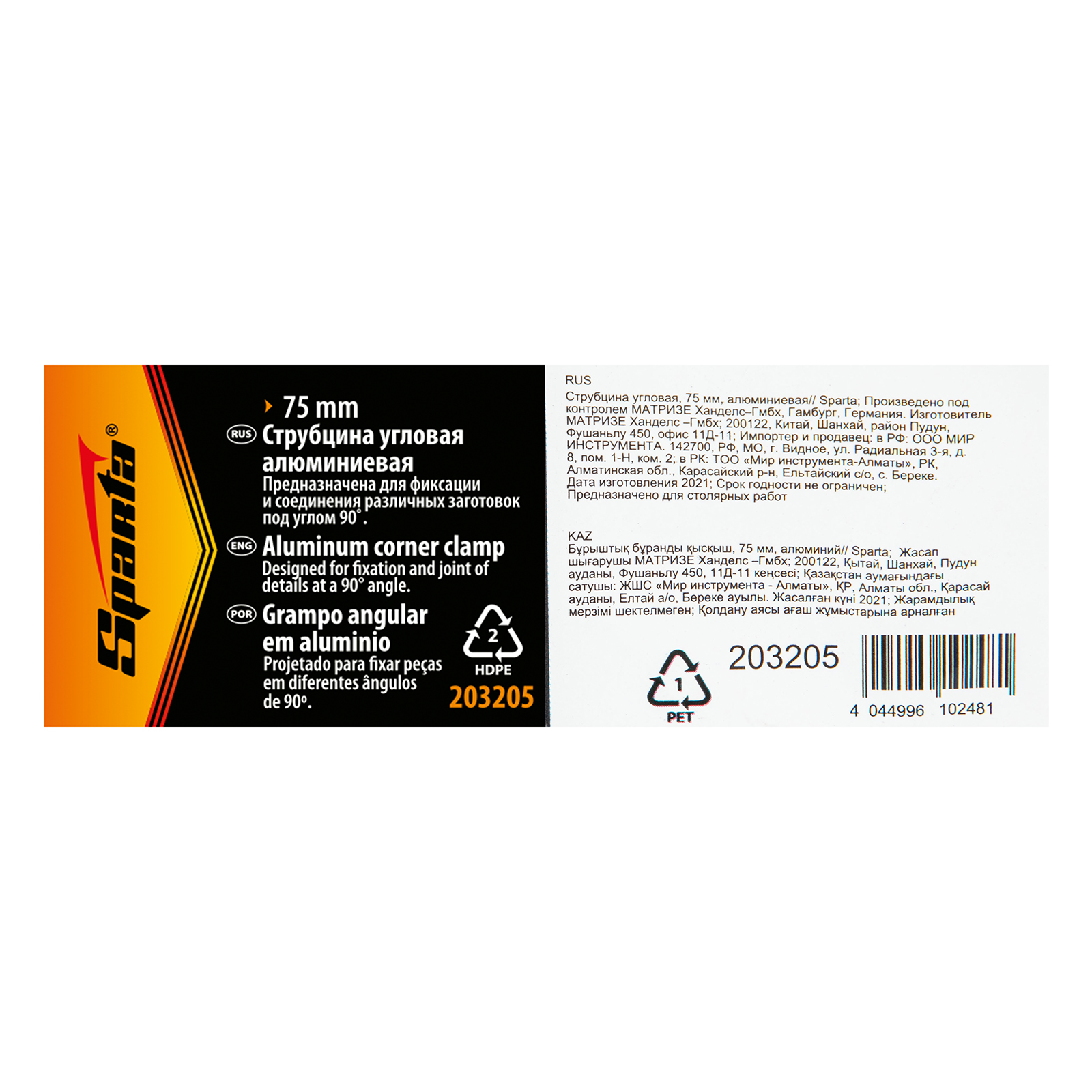 Струбцина угловая, 75 мм, алюминиевая Sparta в Москве
