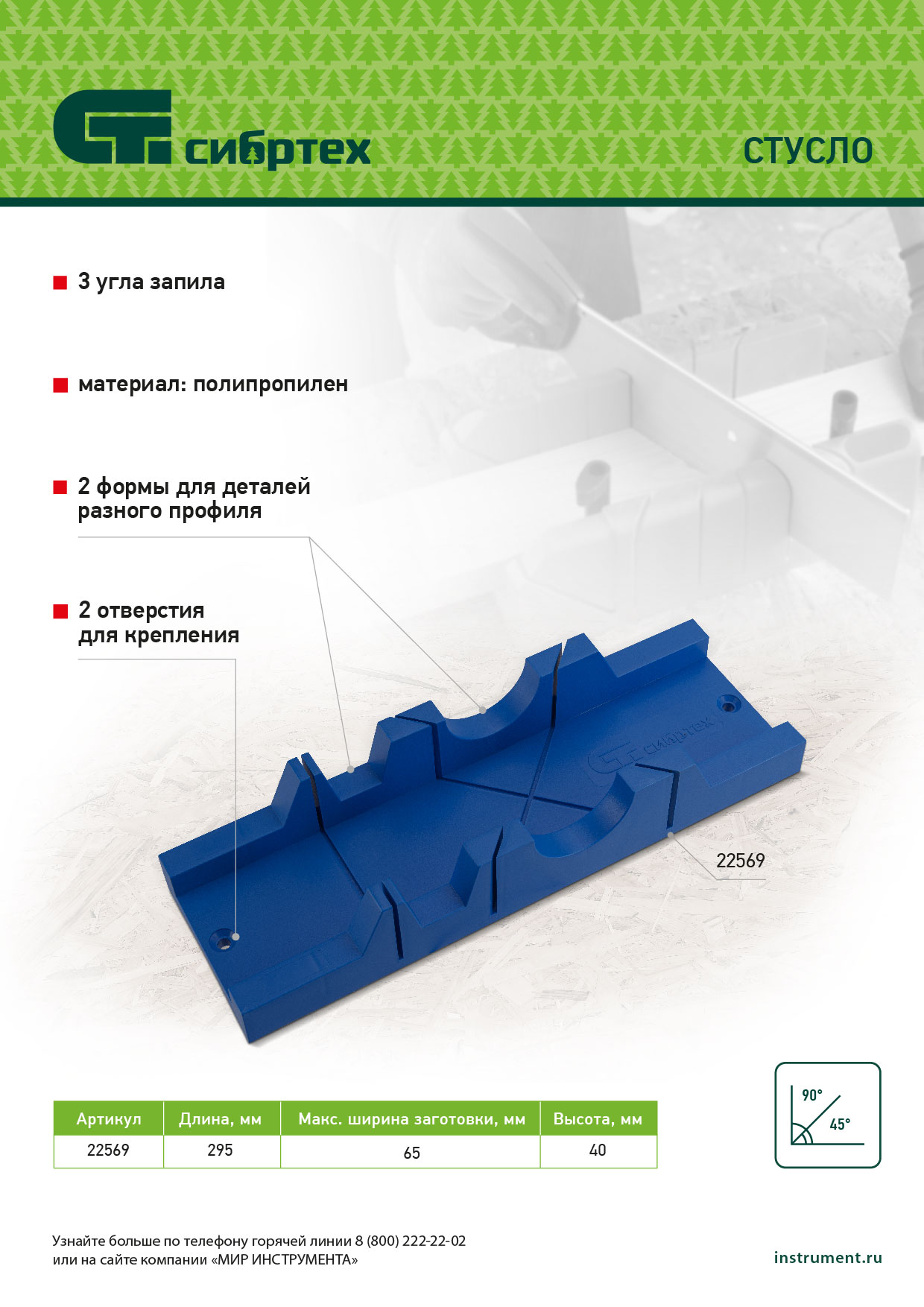Стусло, 295 х 65 мм, пластиковое, 3 угла для запила Сибртех в Москве