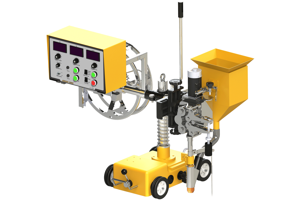 Промышленный многофункциональный сварочный аппарат для автоматической сварки под флюсом (SAW) с функцией ручной дуговой сварки покрытым электродом (ММА) и воздушно-дуговой строжки (Googing). Источник сварочного тока в составе аппарата обеспечивает сварочные процессы с жесткой ВАХ «CV» (Constant Voltage) и падающей ВАХ «СС» (Constant Current) при 100% ПВ с током сварки до 1 000 А. Возможно выполнение сварных изделий из всех видов стали с толщинами от 3 до 350 мм.