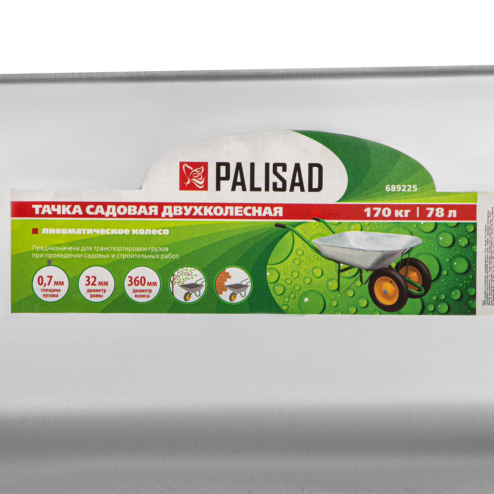 Тачка садовая, два колеса, грузоподъемность 170 кг, объем 78 л Palisad в Москве