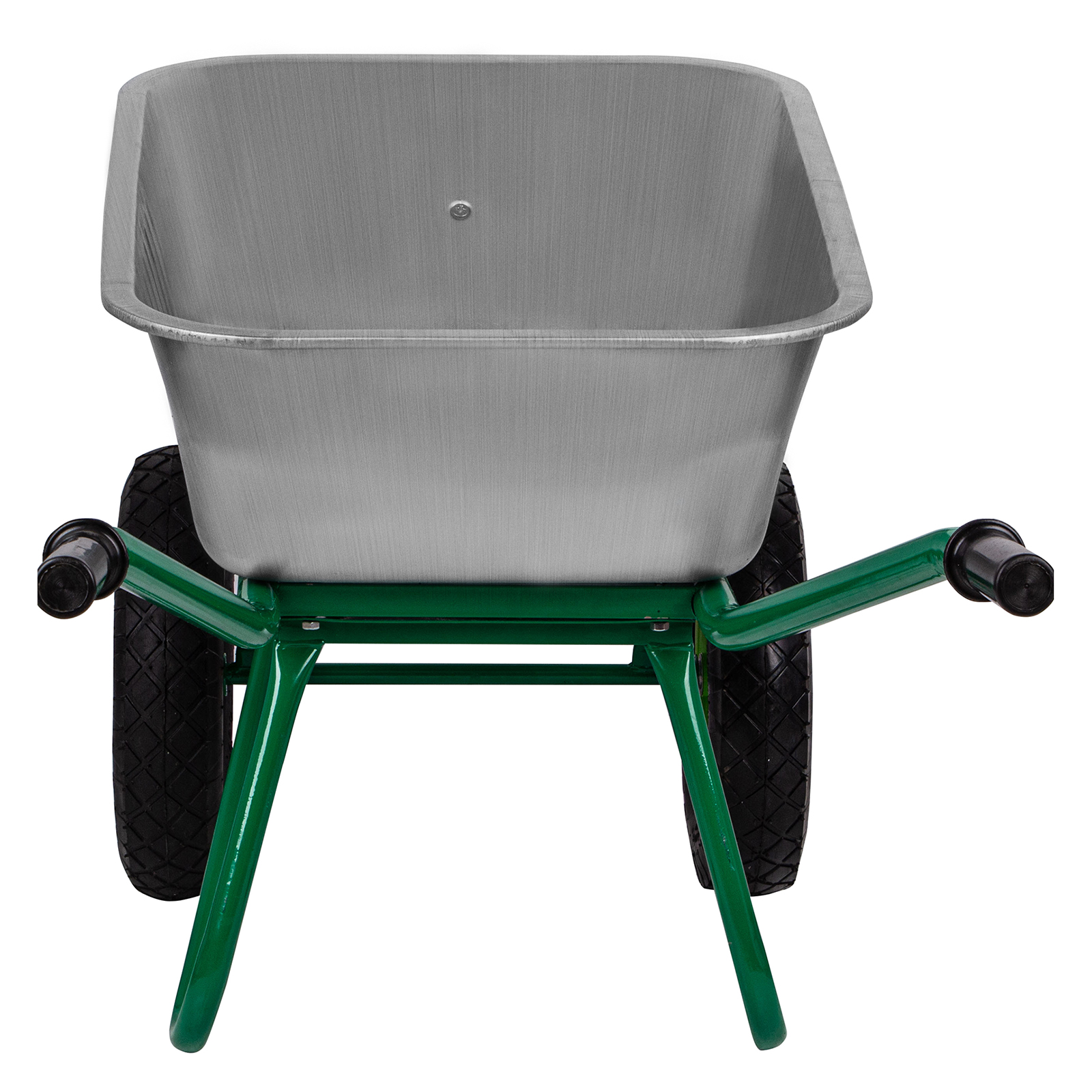 Усиленная садово-строительная тачка 689863, 2-колесная, грузоподъемностью 320 кг и объемом корыта 100 л, будет полезна во время строительства или ухода за дачным участком. Ее используют для перемещения мусора, веток, листьев, грунта, щебня, песка, а также строительных смесей. Необходимая грузоподъемность достигается благодаря стальной раме с толщиной стенок 1,2 мм и кузову со стенками толщиной 0,7 мм. 2 колеса увеличивают устойчивость тачки. Шарикоподшипники облегчают вращение колес, поэтому тачку легко перемещать по неровной поверхности.