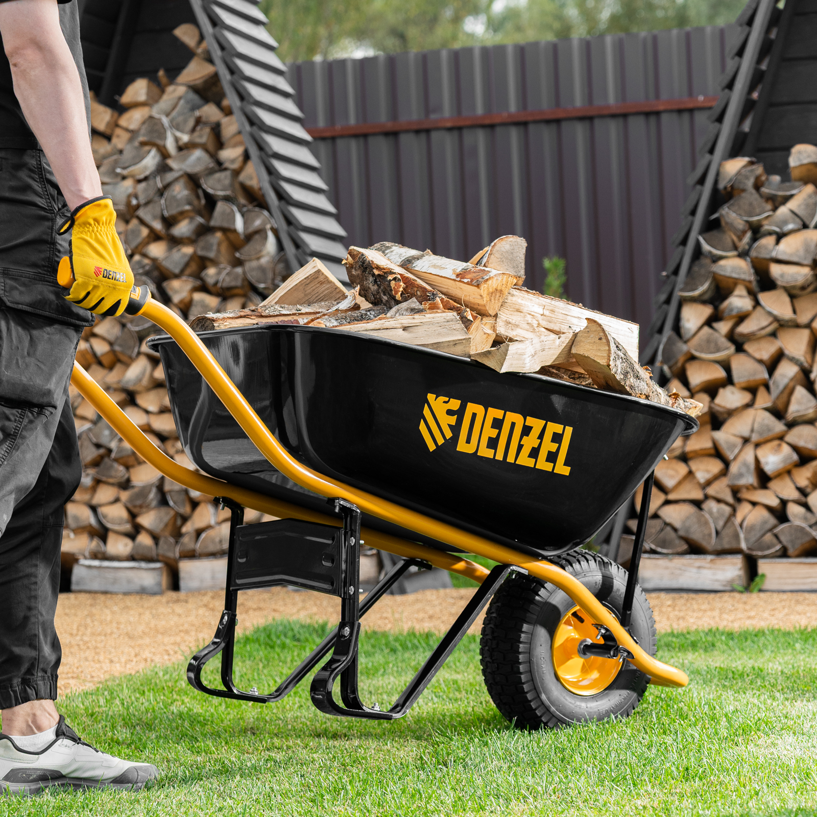 Усиленная строительная тачка Denzel 689965 с колесом 15 х 6.00-6, объемом 130 л и грузоподъемностью до 230 кг, предназначена для профессионального использования на строительной площадке и в сельском хозяйстве. С ее помощью можно транспортировать строительные грузы и различные сыпучие материалы.