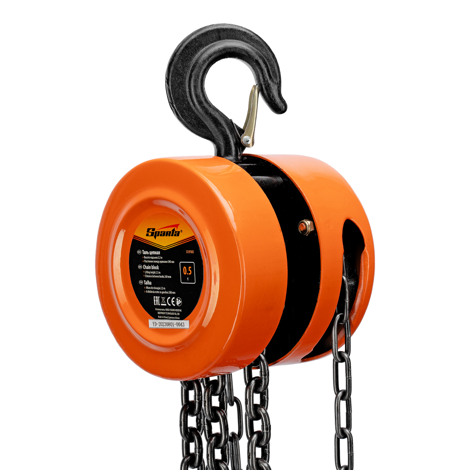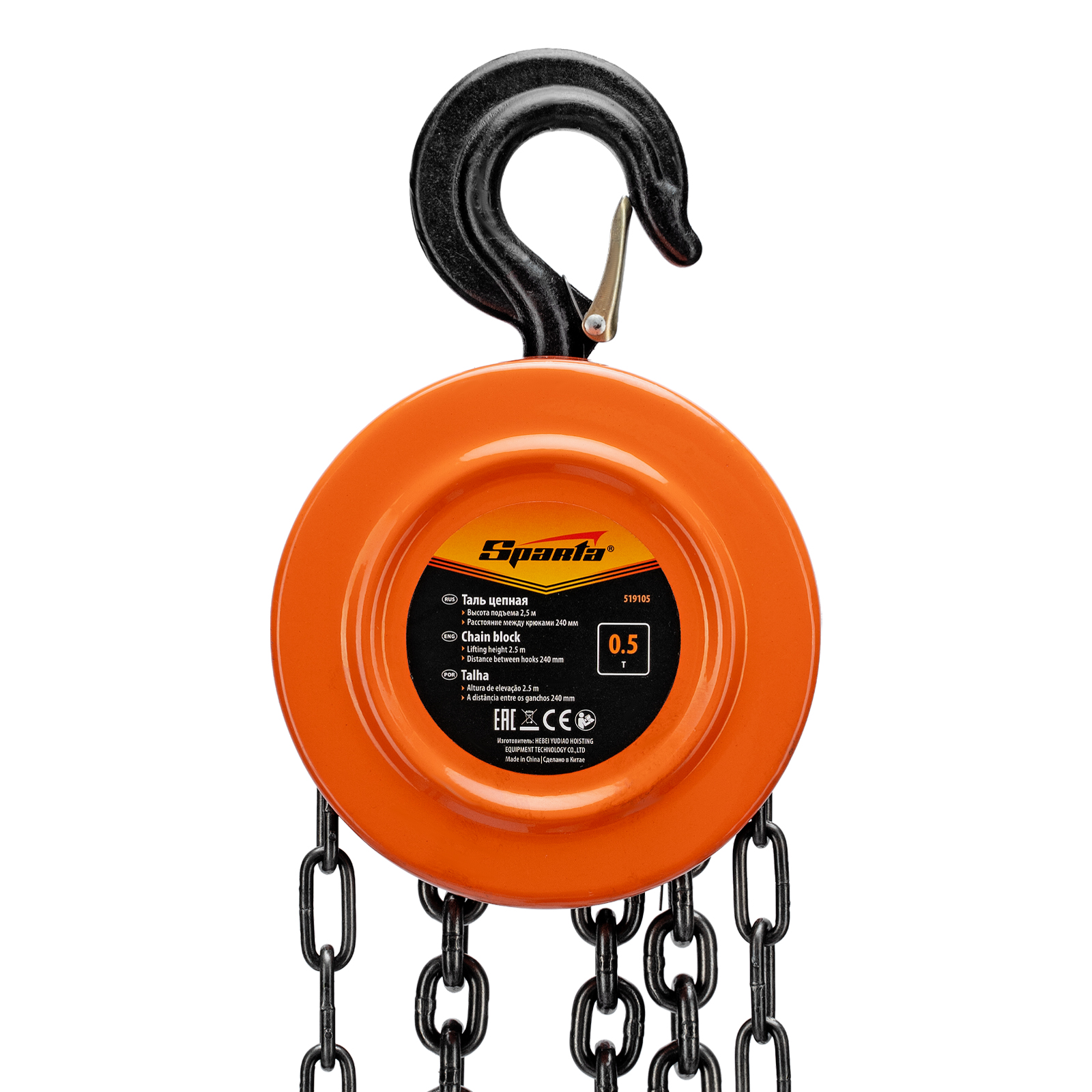 Таль цепная, 0.5 т, H подъема 2.5 м, расстояние между крюками 240 мм Sparta