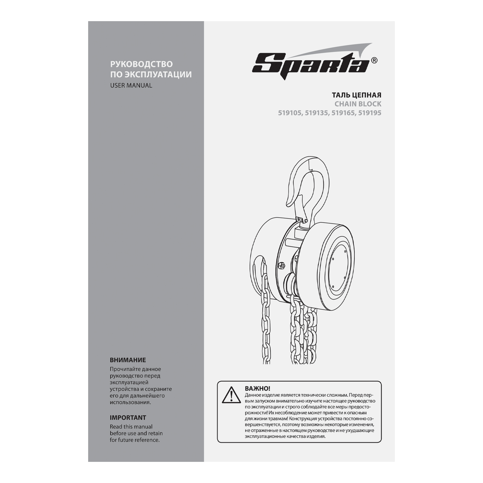 Таль цепная - 1 штРуководство по эксплуатации - 1 шт |