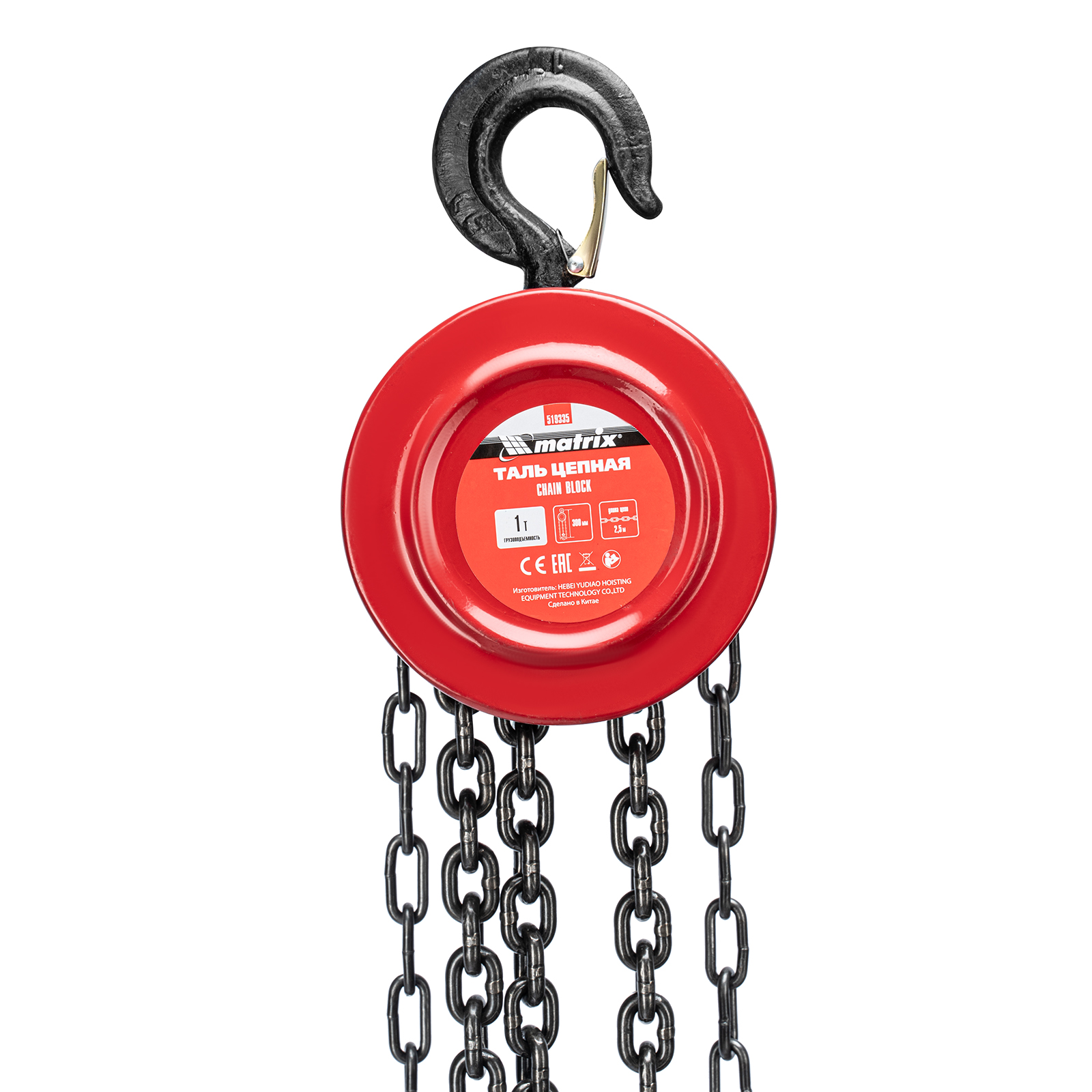 Таль цепная, 1 т, H подъема 2.5 м, расстояние между крюками 300 мм Matrix