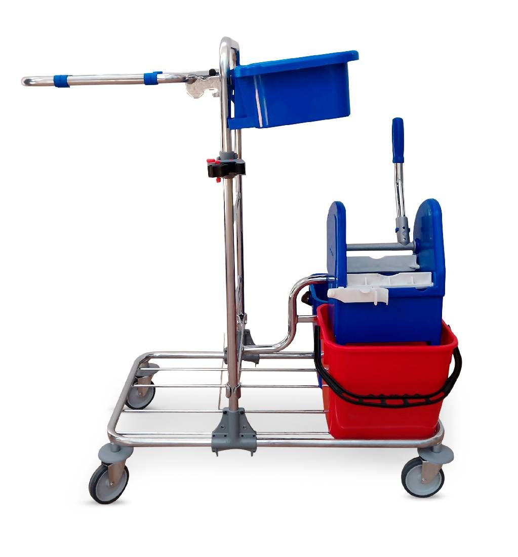 Универсальная тележка, идеально подходящая для помещений, где требуется вытирание пыли, сбор мусора, мытье полов и уборка поверхностей. В комплекте входит два ведра по 15 л., пакетодержатель для сбора мусора - 120 л. Пластиковая навесная корзина. Мусорный мешок и отжим в комплект не входит и приобретается дополнительно.
