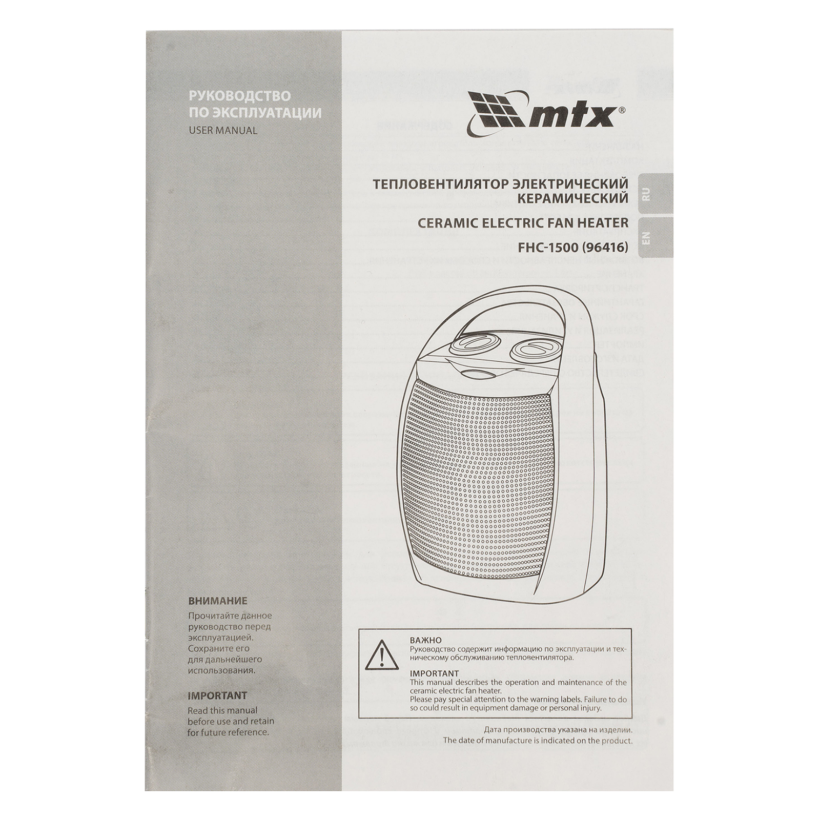 Тепловентилятор электр. керамический FHC-1500, 3 реж., вентилятор, нагрев 750/1500 Вт, MTX в Москве