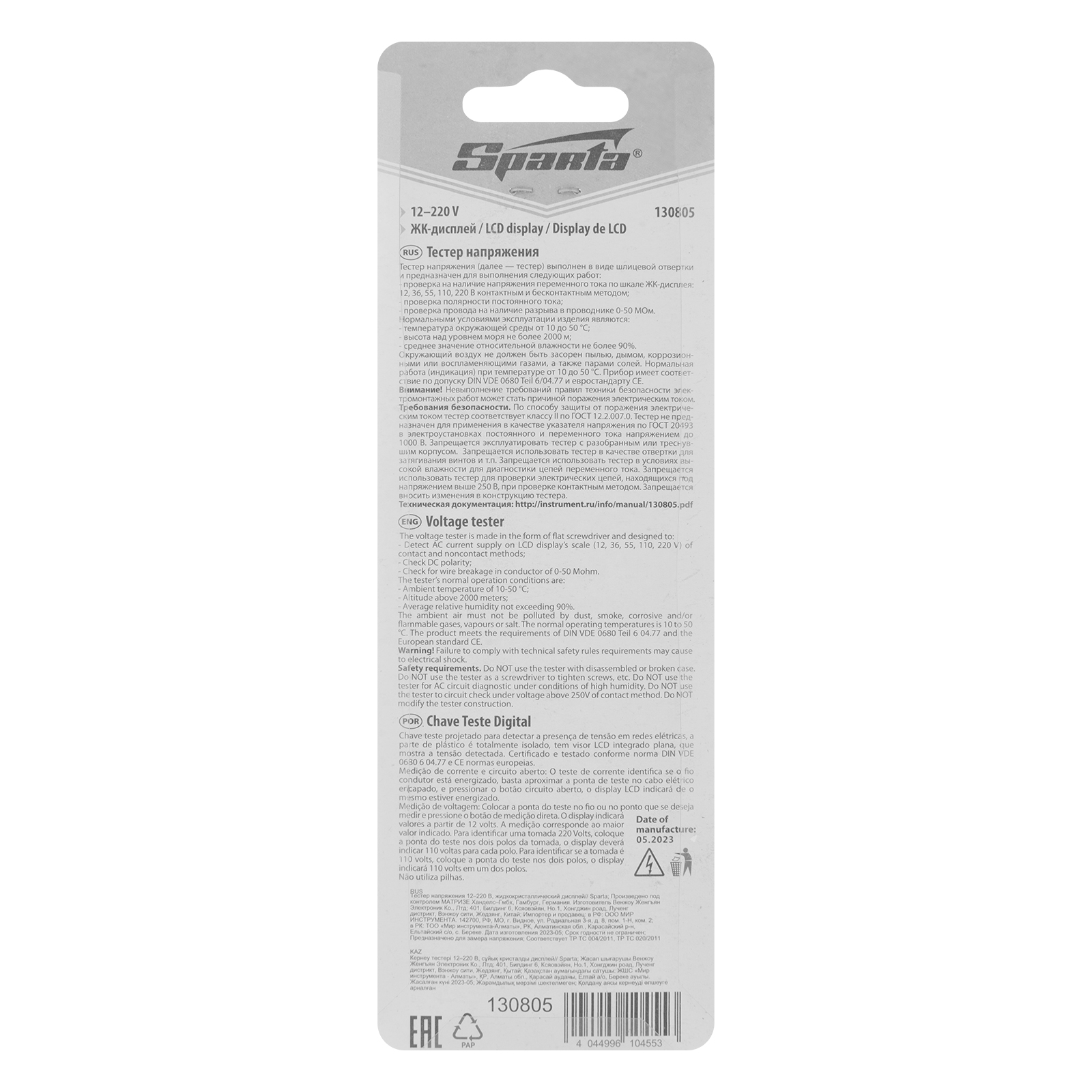Тестер напряжения 12-220 В, жидкокристаллический дисплей Sparta в Москве