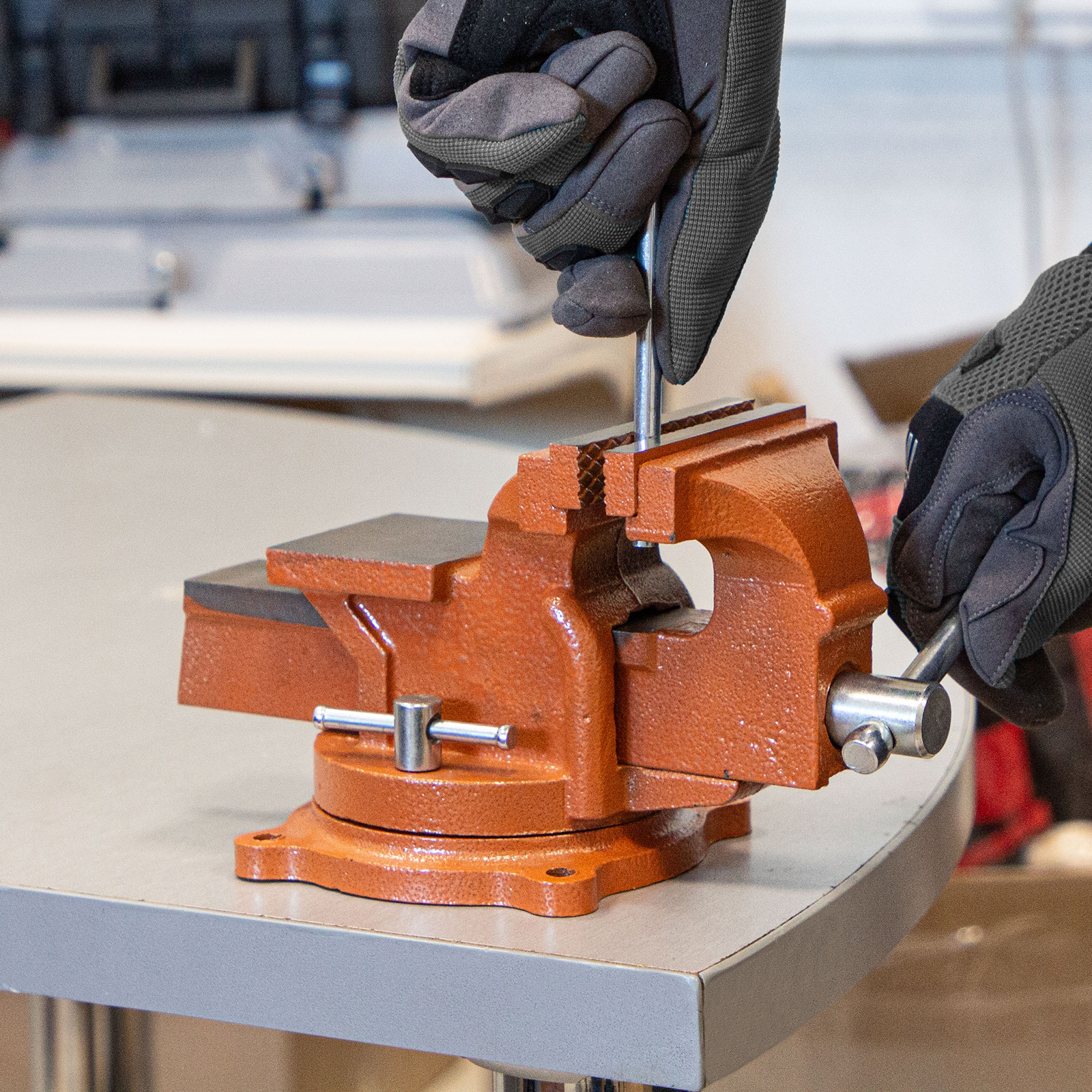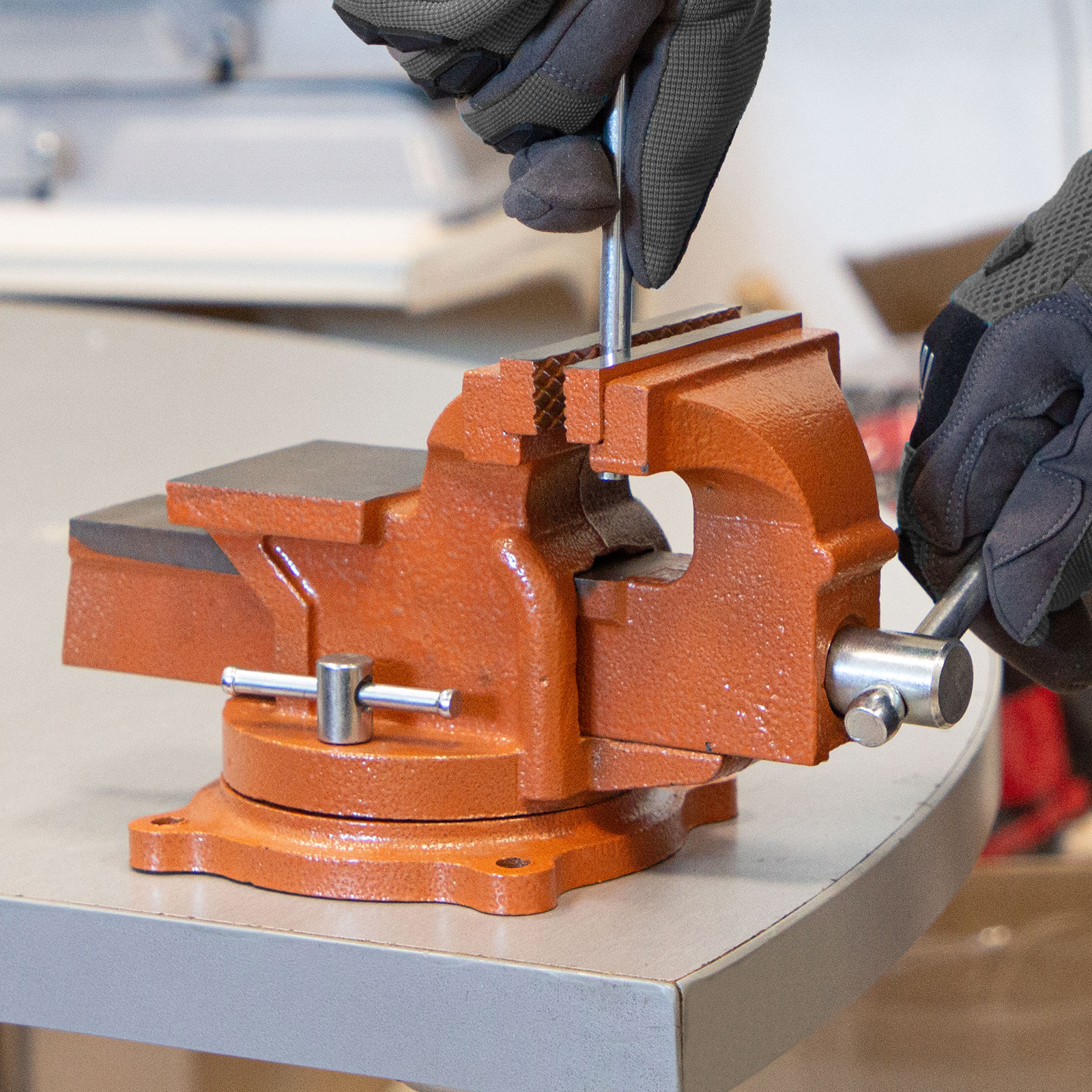 - Поворотные тиски позволяют менять положение заготовки для удобства ее обработки.