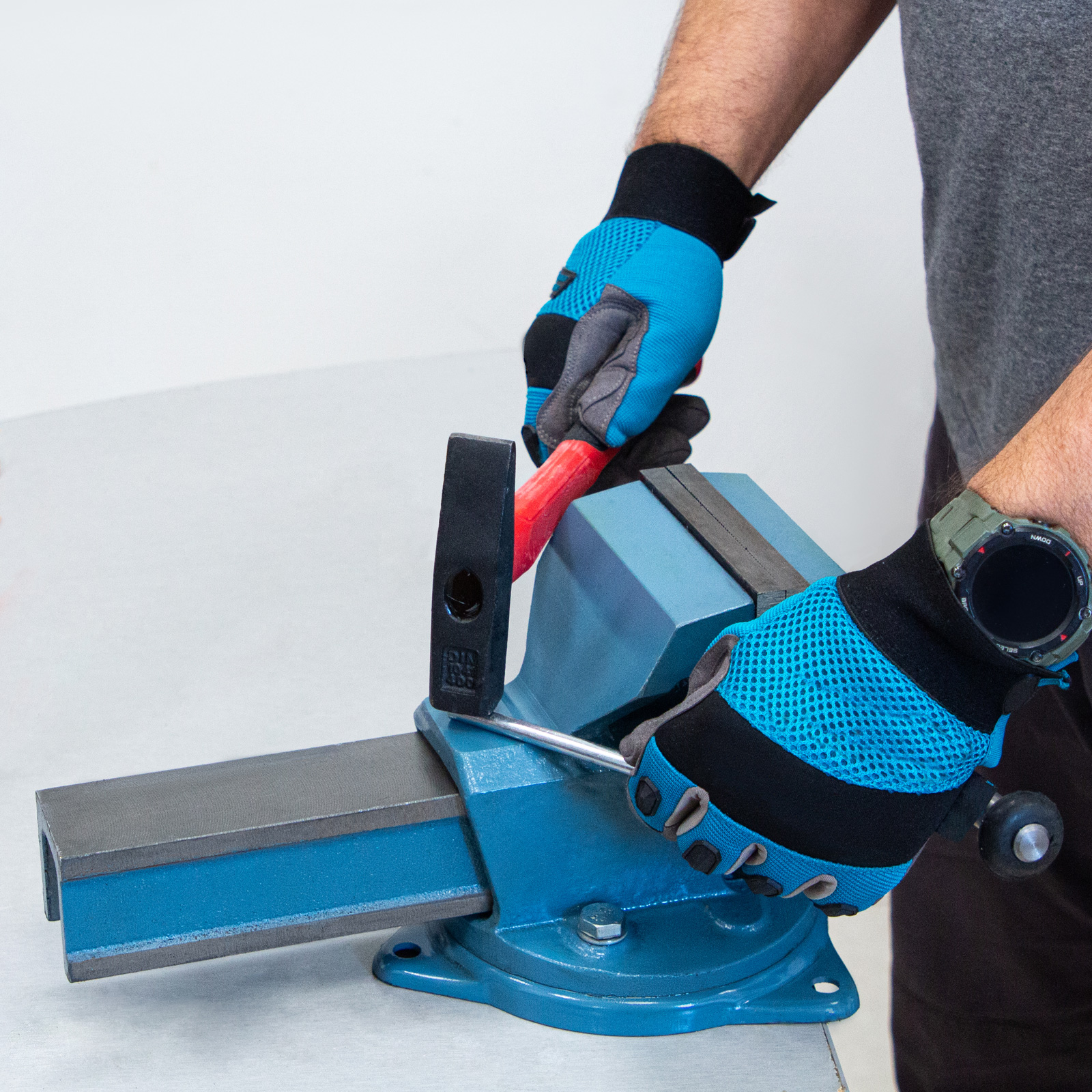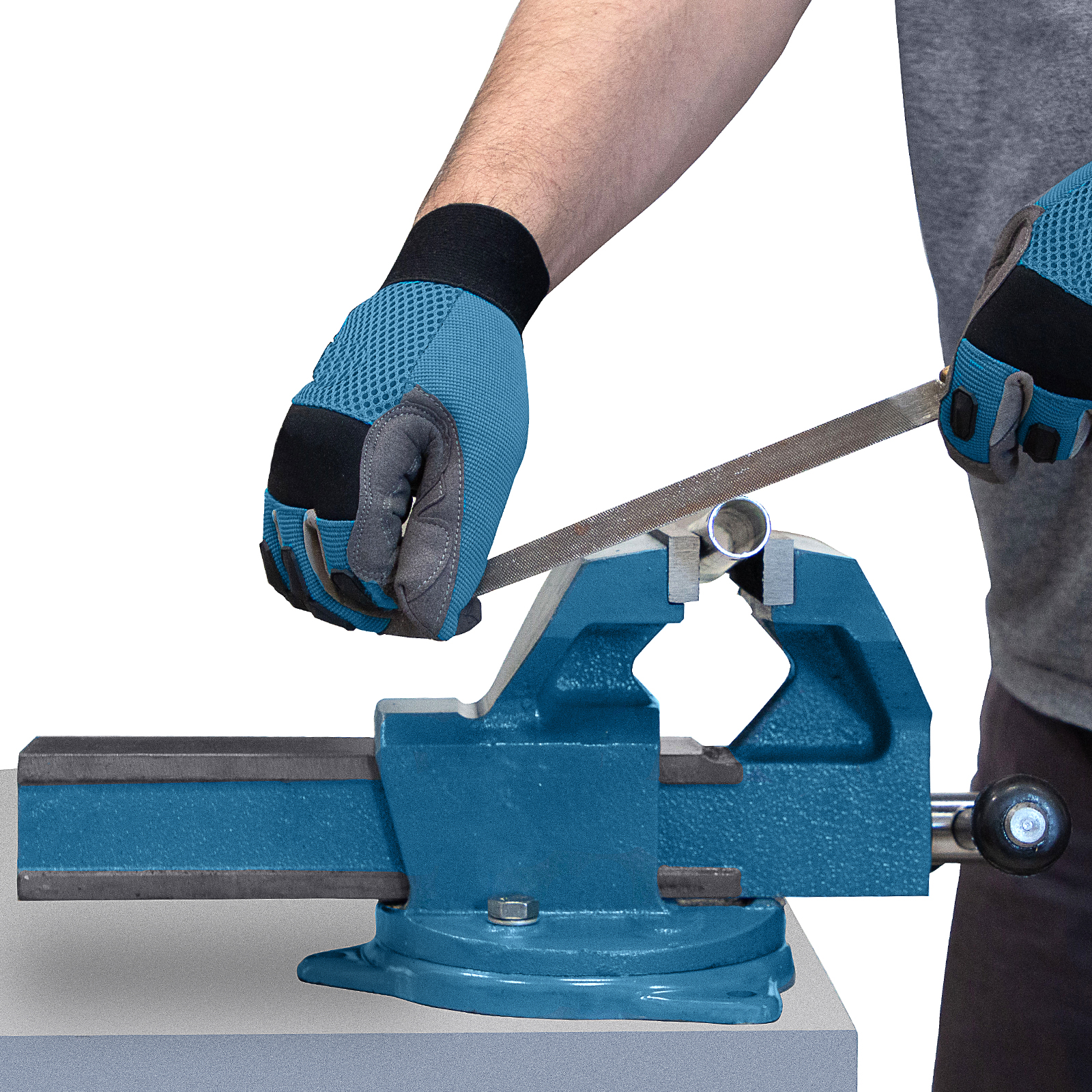 - Надежная фиксация изделий — тиски оснащены рельефными губками.