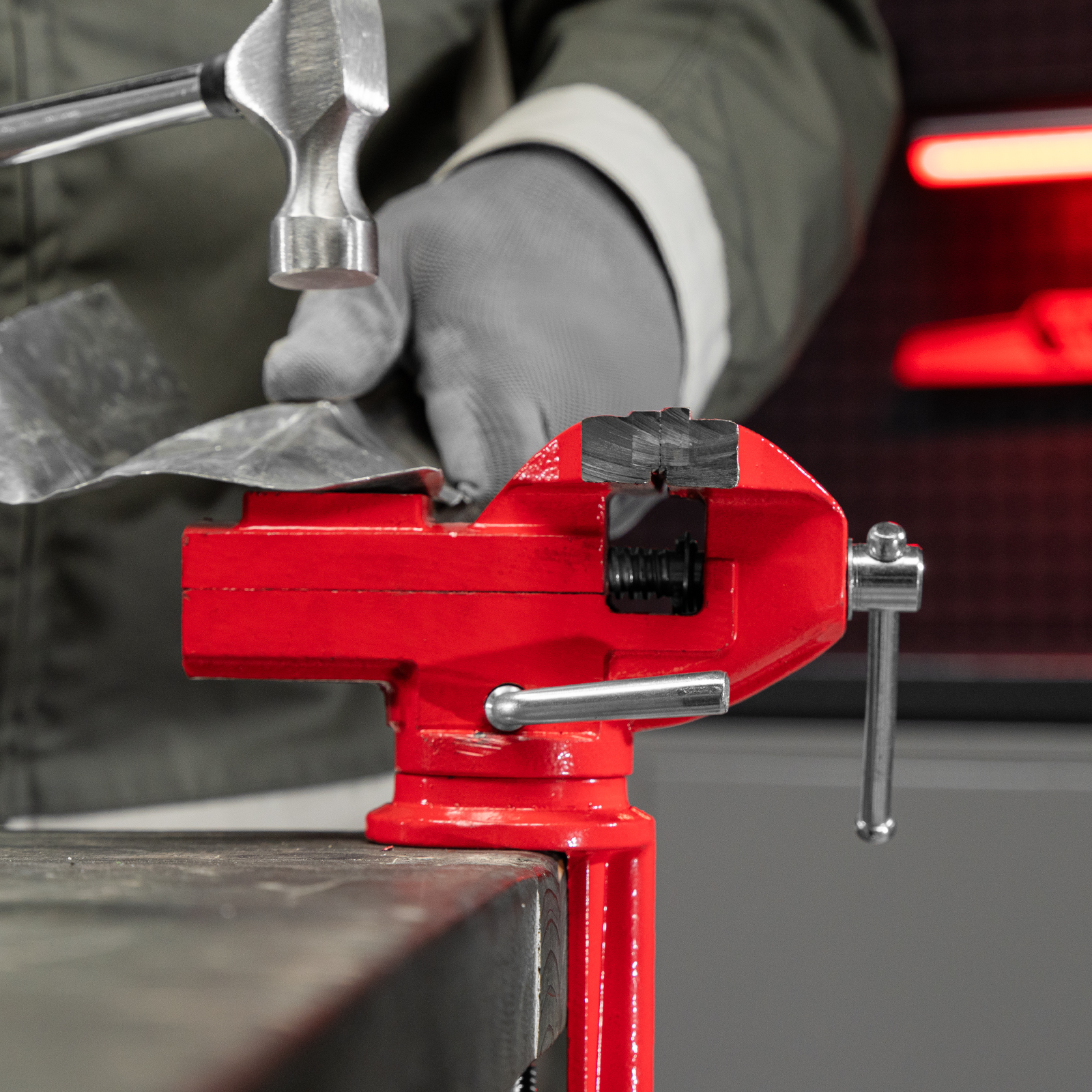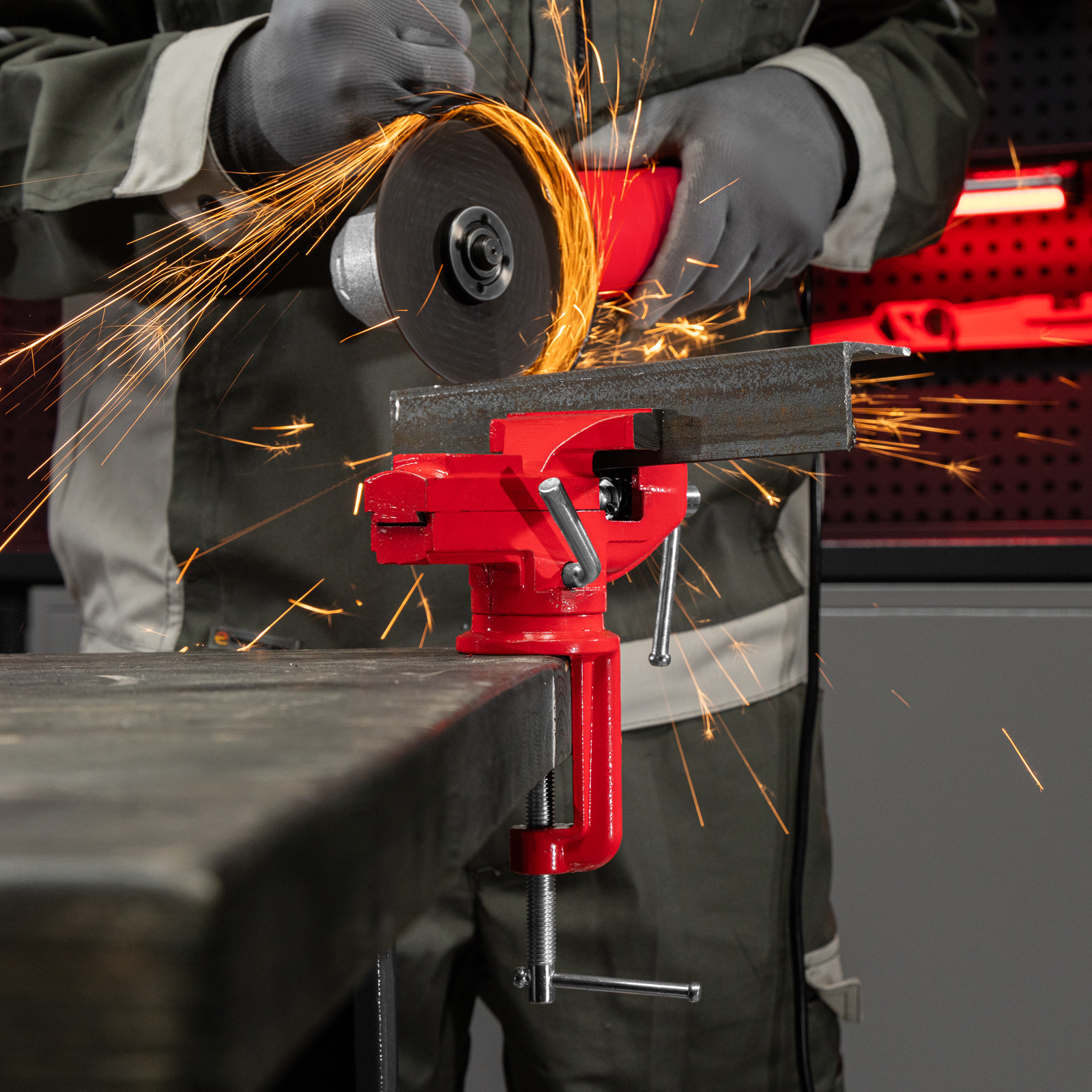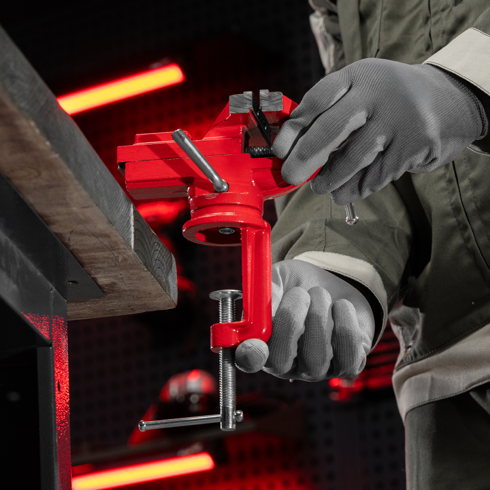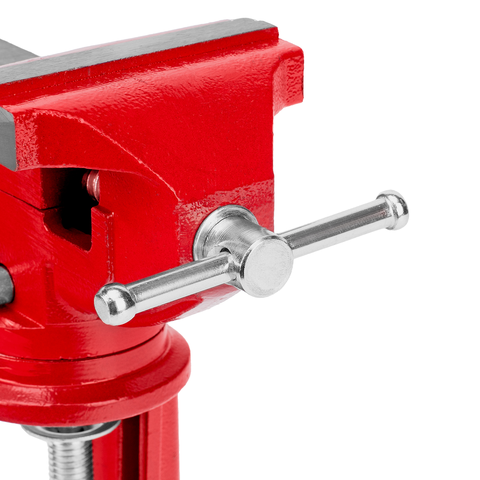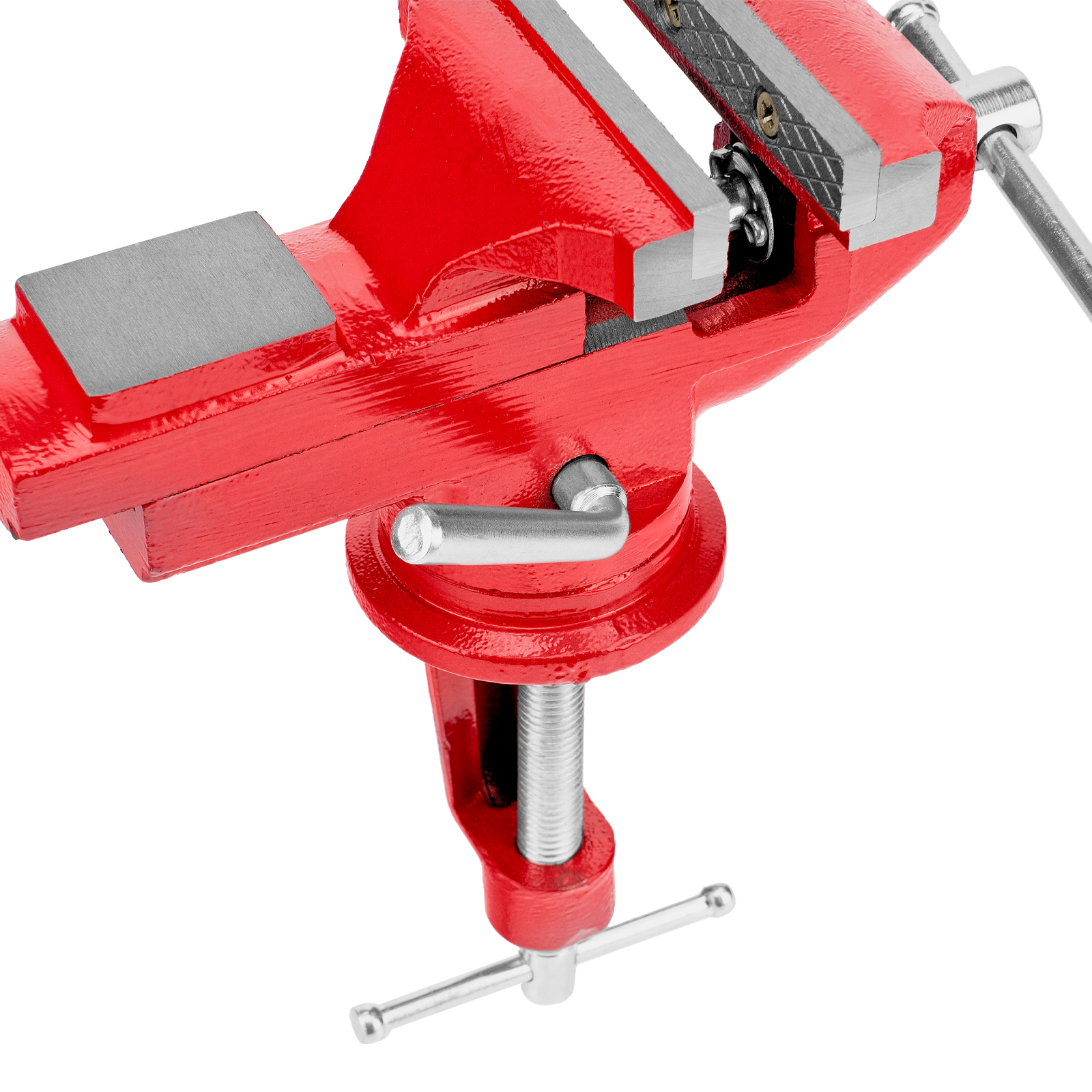 - Простая подготовка к работе — тиски надежно фиксируются на рабочем столе при помощи струбцины с винтовым зажимом.