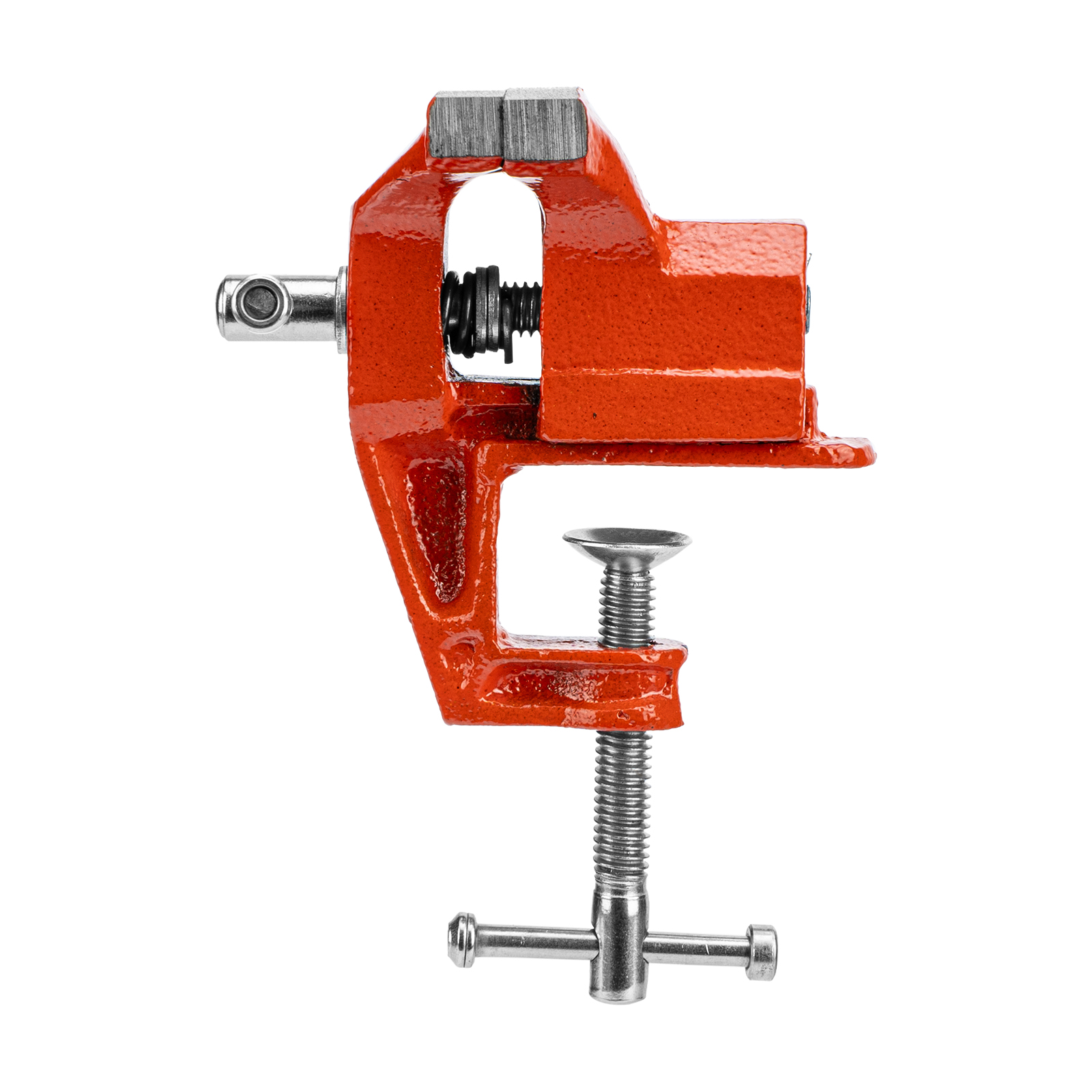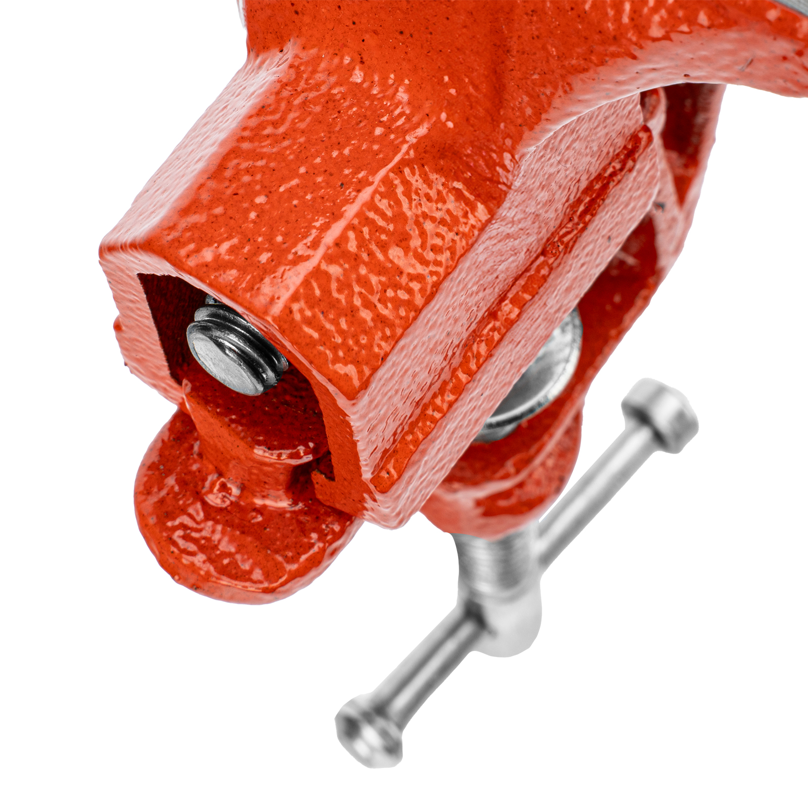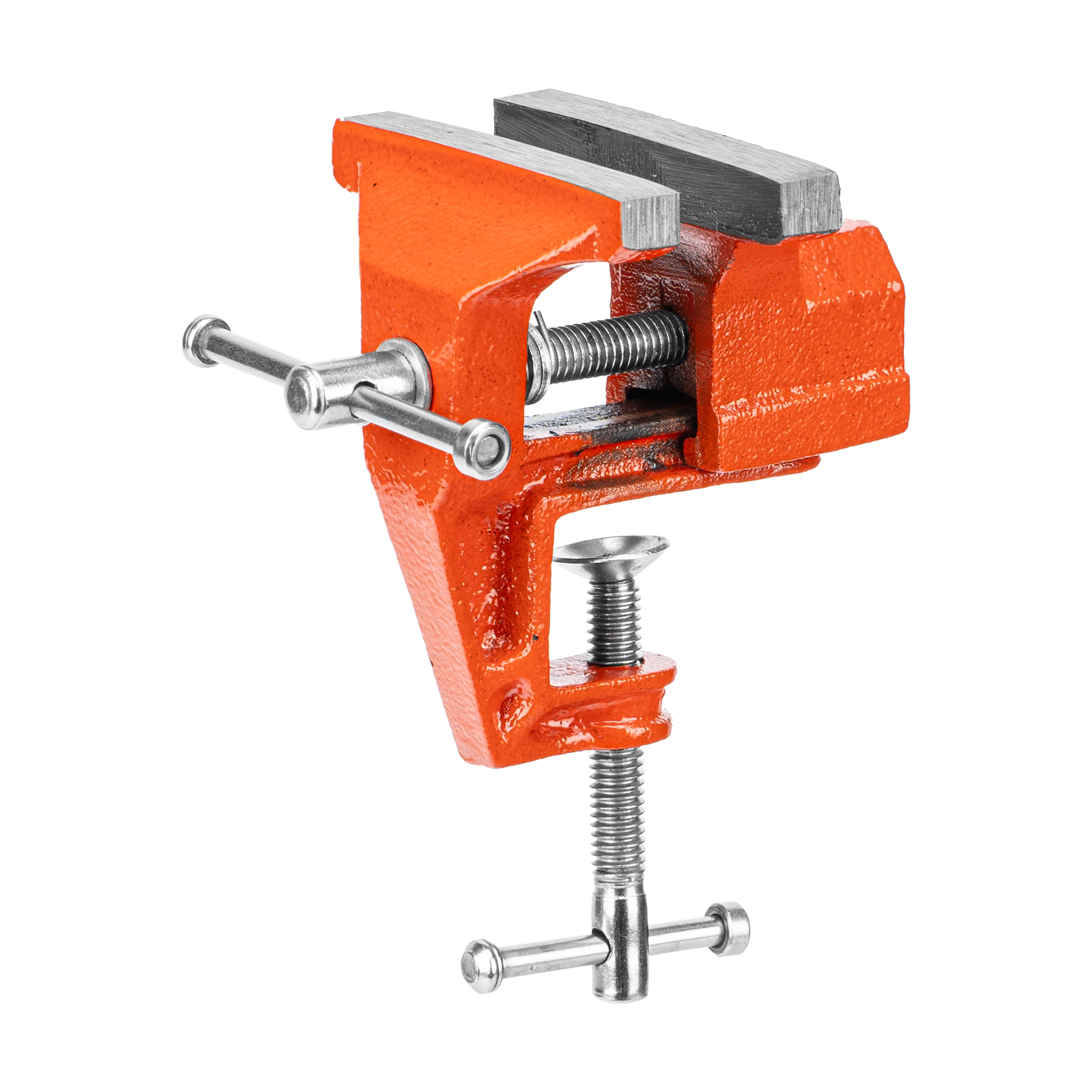 - Простое использование — винтовой зажимной механизм позволяет легко устанавливать и снимать тиски с рабочего стола.