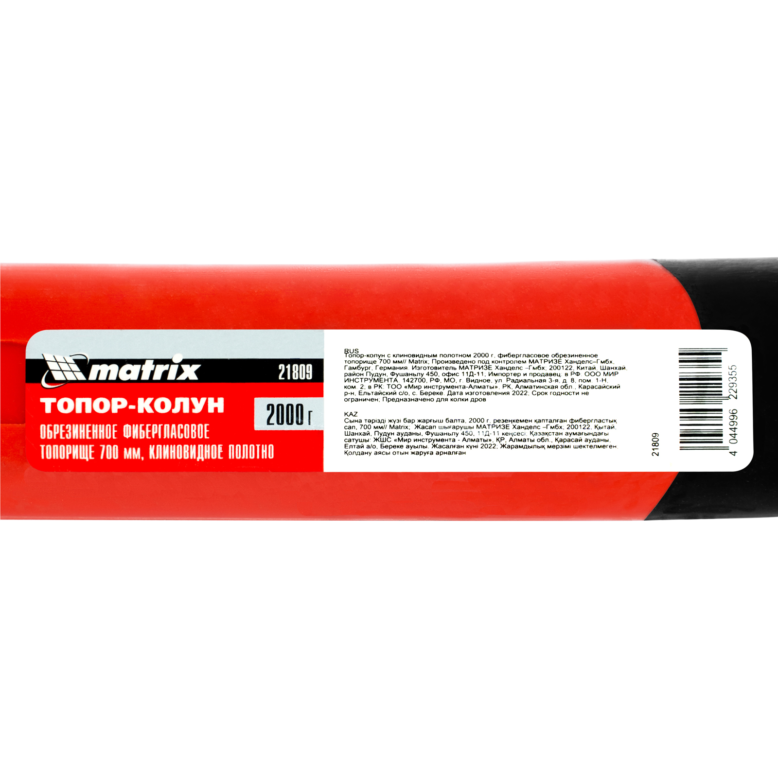 Топор-колун с клиновидным полотном 2000 г, фибергласовое обрезиненное топорище 700 мм Matrix в Москве
