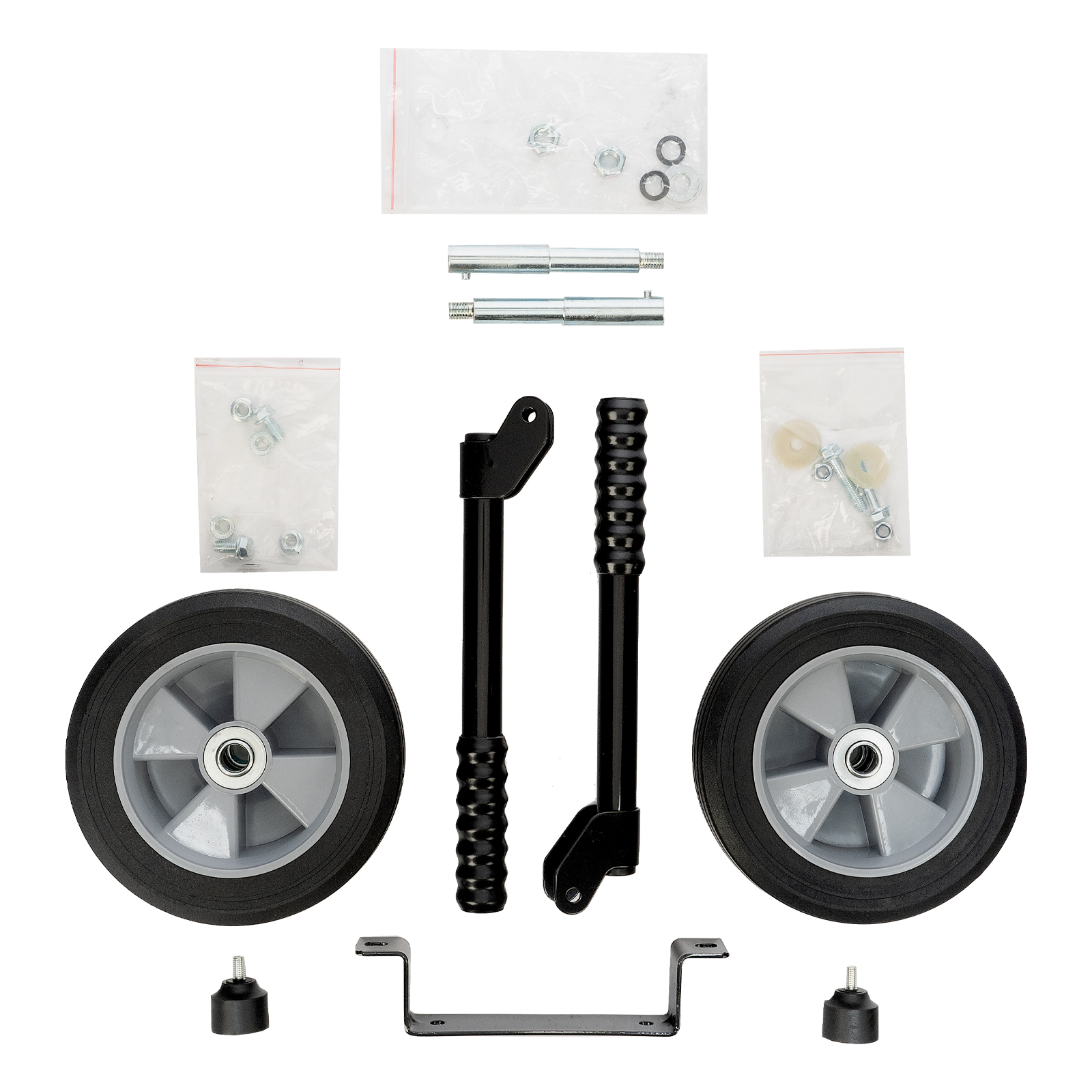 Колесо - 2 штКронштейн опоры - 1 штОпора - 2 штОсь - 2 штРучка - 2 штБолт М8×50 (2 шт), М8×16 (2 шт)Гайка М8 фланцевая - 4 штГайка М8 самоконтрящаяся - 2 штГайка М12 - 2 штШайба М12 (2 шт), М12 пружинная (2 шт)Шайба пластиковая - 4 штРуководство по эксплуатации, упаковка - 1 шт |