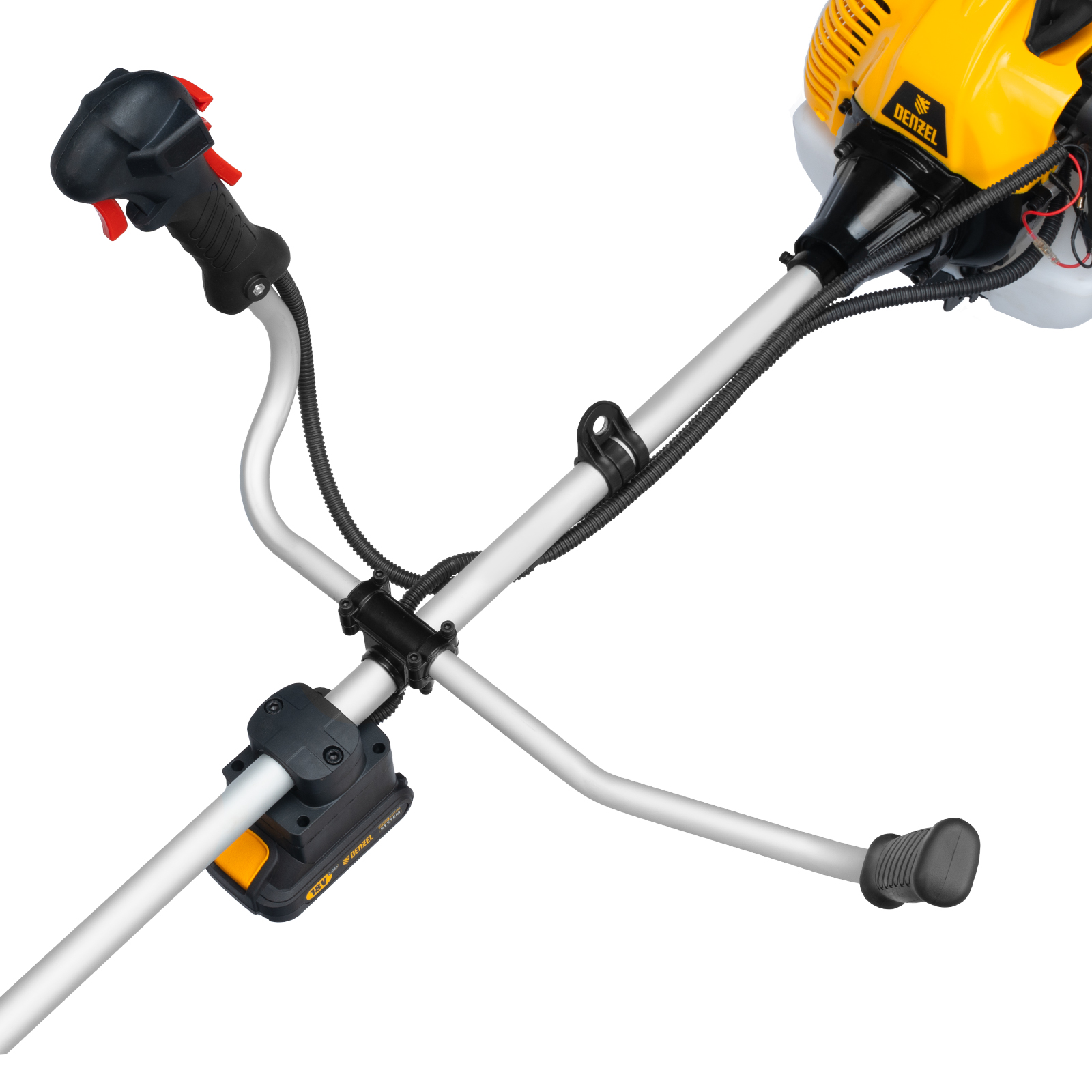 Триммер бензиновый DT-43E, 43 см3, неразъемная штанга, электростартер, состоит из 2 частей Denzel в Москве