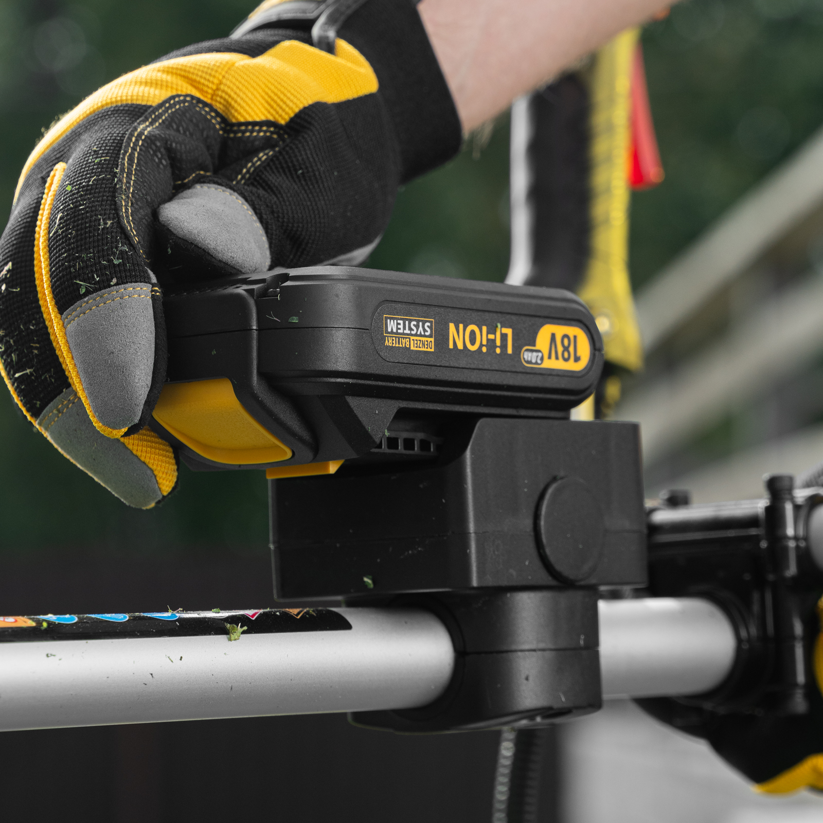 - Дополнительные возможности — можно приобрести и установить на триммер диски Denzel 96323, 96325 для быстрого удаления растительности с жесткими стеблями (полыни, крапивы, лебеды), 96328 для скашивания молодых побегов кустарника диаметром до 3 мм.