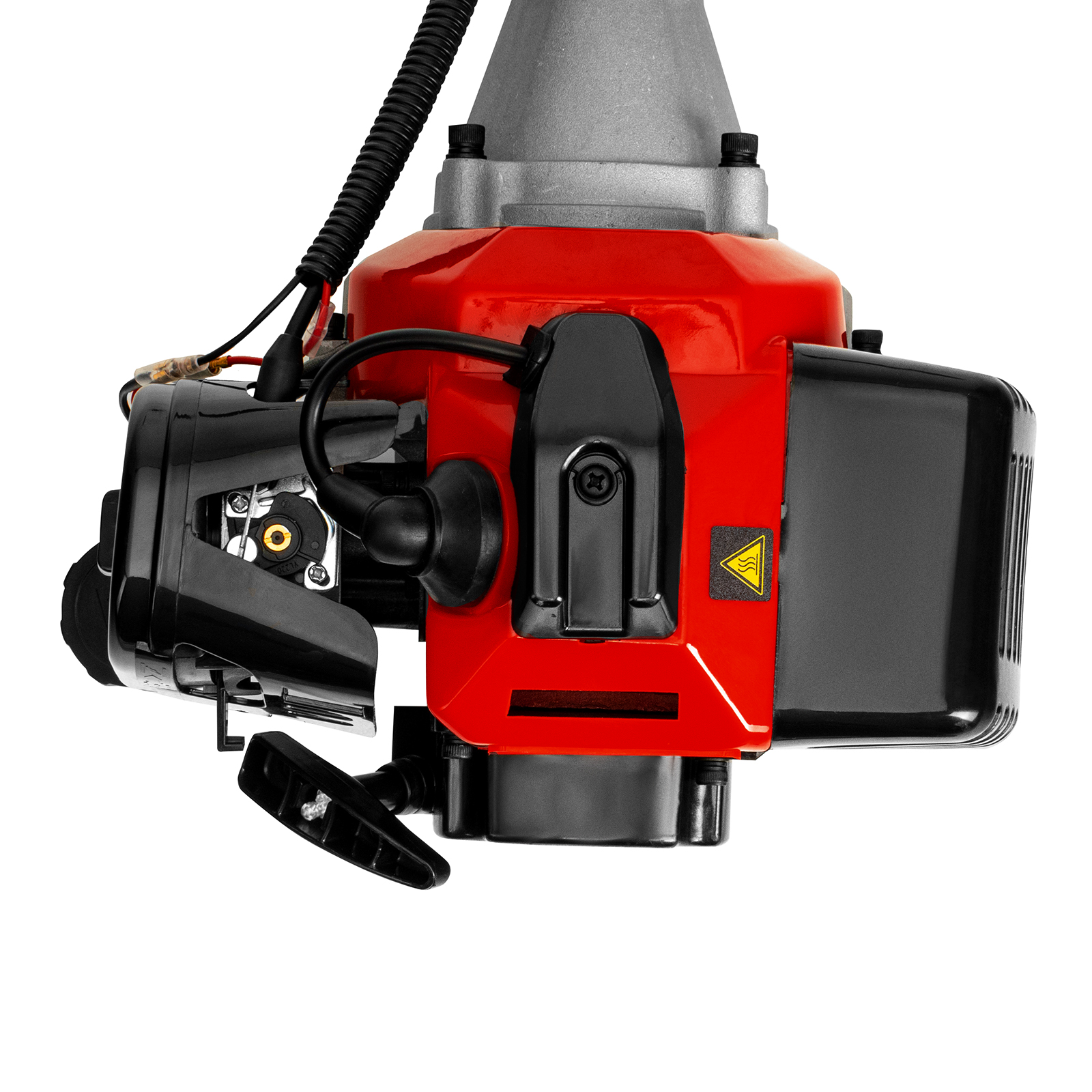 - Безопасность — производитель предусмотрел блокировку курка газа для предотвращения случайного запуска, защитный кожух препятствует вылету травы, веток, камней в сторону пользователя.