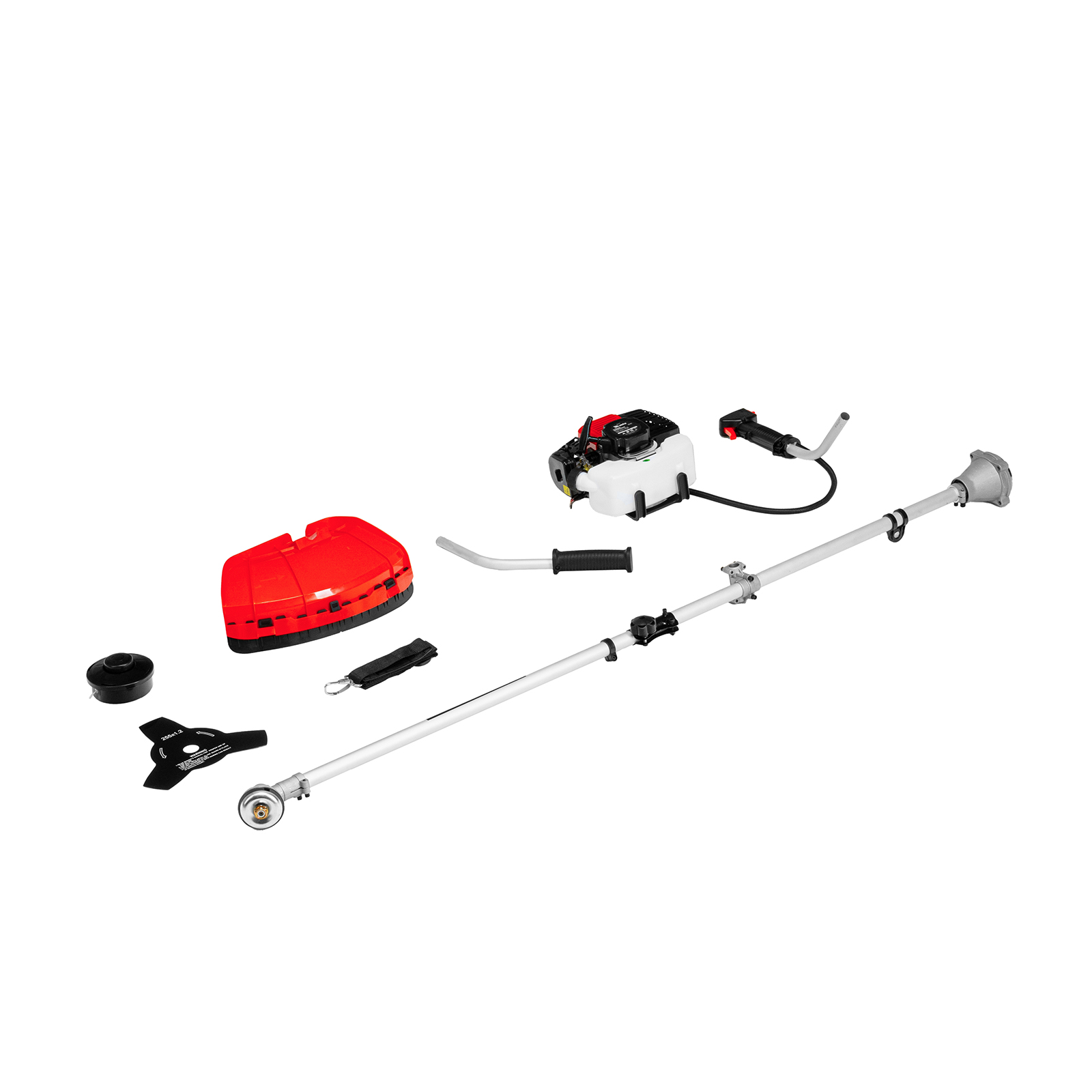 Двигатель с правой рукояткой - 1 шт, левая рукоятка - 1 штШтанга - 1 (состоит из 2 частей)Защитный кожух с ножом - 1 шт, кронштейн защитного кожуха - 1 штКатушка с леской - 1 шт, нож трехлопастной - 1 штДозатор для приготовления смеси - 1 штРемень плечевой - 1 штКорпус сцепления с крепежом - 1 шт, редуктор с винтами - 1 штУзел крепления рукояток с крепежом - 1 шт, узел подвеса ремня - 1 штСвечной ключ - 1 шт, имбусовый ключ Н5 - 1 шт, имбусовый ключ Н6 - 1 штБолт M6×20 - 4 шт, болт M5×15 - 2 шт, гайка M5 - 2 штХомут - 2 шт, соединительная муфта - 1 шт, коннектор штанги - 1 штРуководство по эксплуатации с гарантийным талоном - 1 шт |