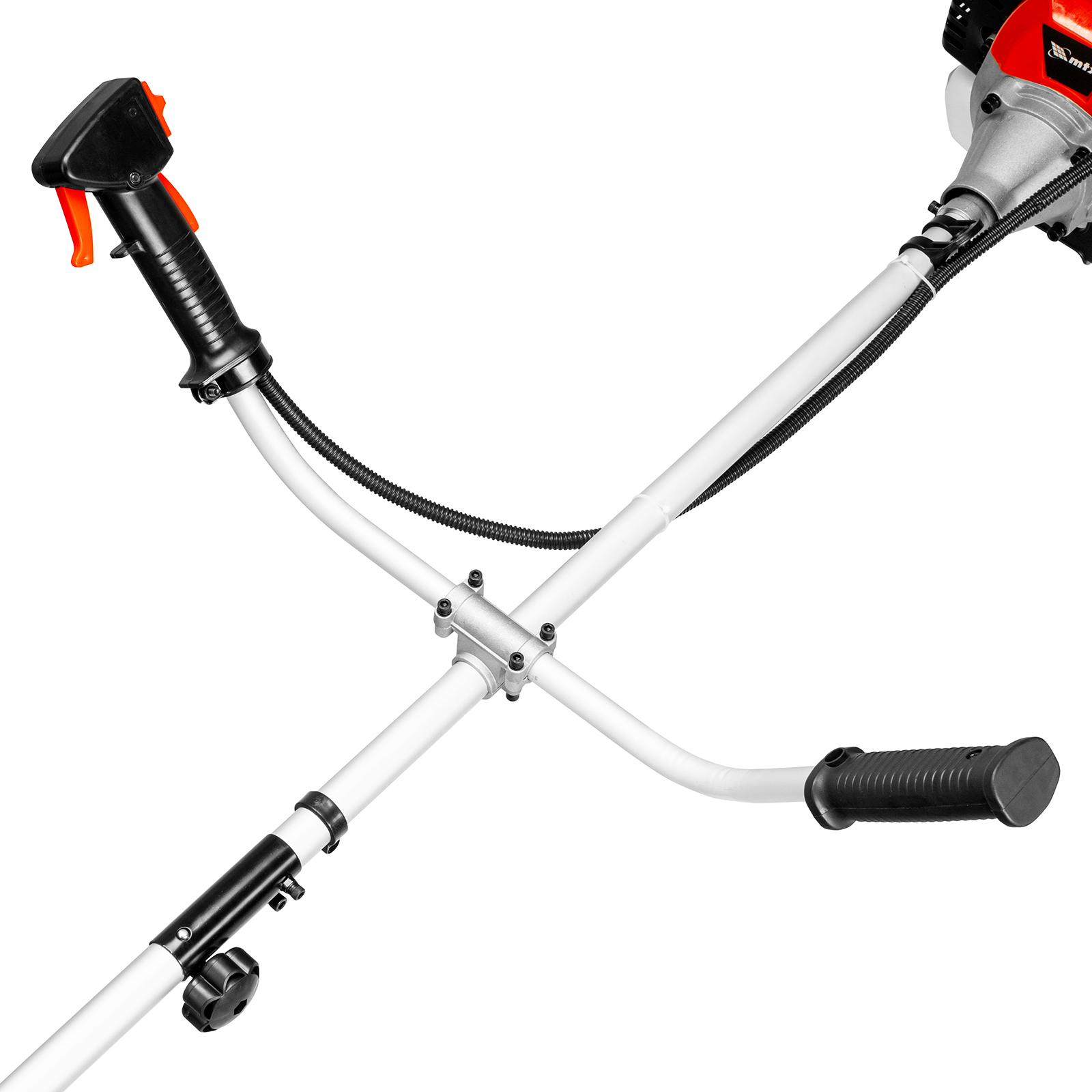 - Комфортная работа — благодаря плечевому ремню и рукояткам велосипедного типа триммер удобно удерживать и направлять.