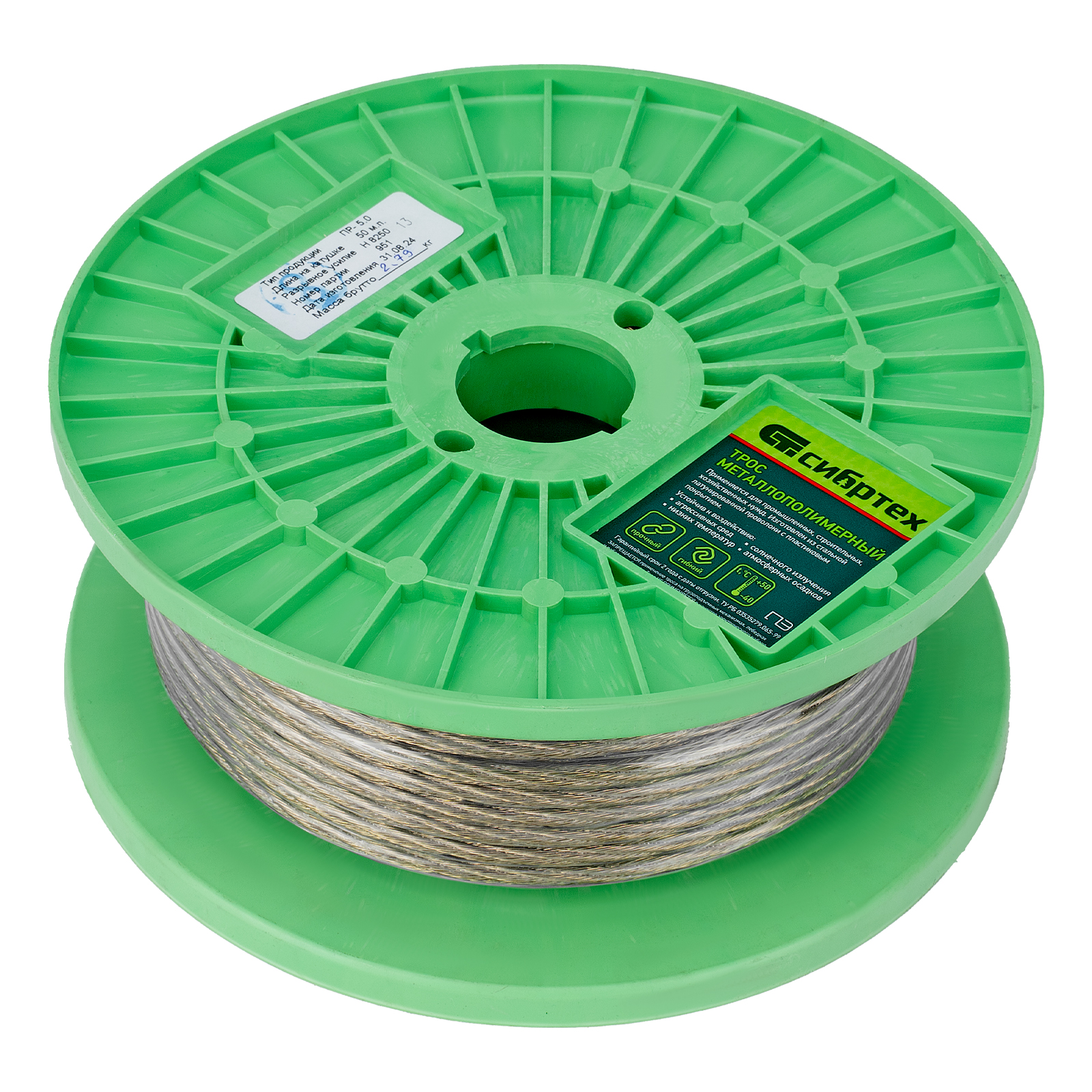 Трос металлополимерный прозрачный ПР-5.0, толщина 5.0 мм, катушка 50 метров Сибртех в Москве