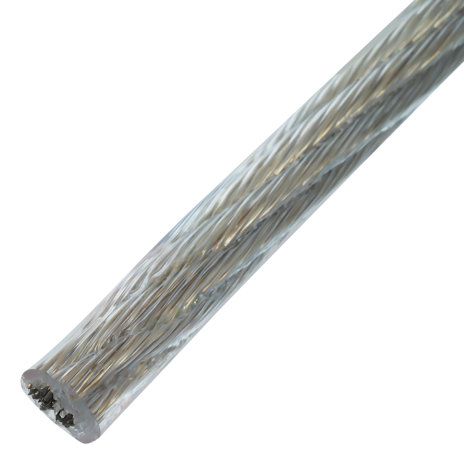 - Целостность покрытия — ПВХ-оболочка нанесена на прозрачный трос методом экструзии.