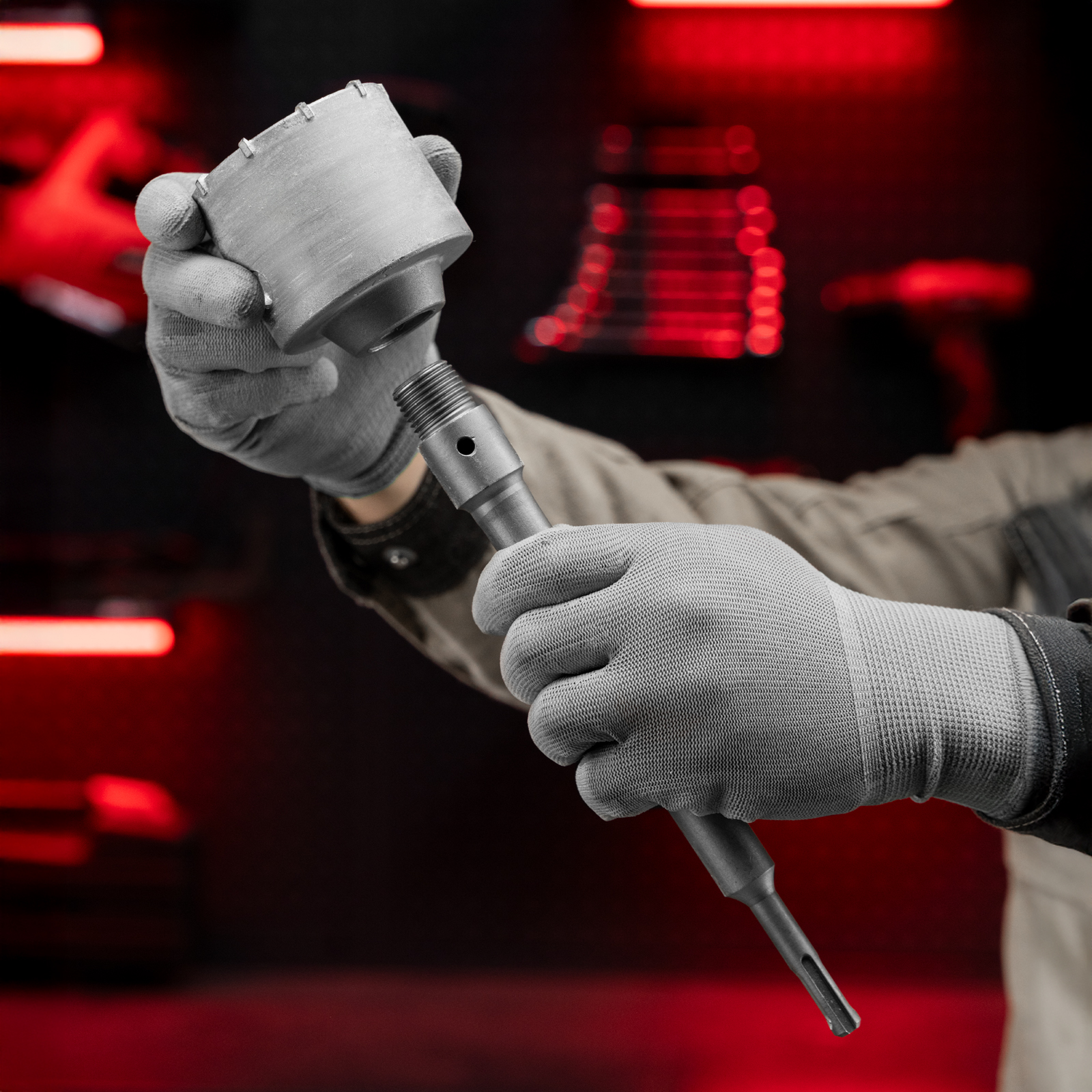 - Простая подготовка к работе — благодаря хвостовику SDS-PLUS установка оснастки не занимает много времени.
