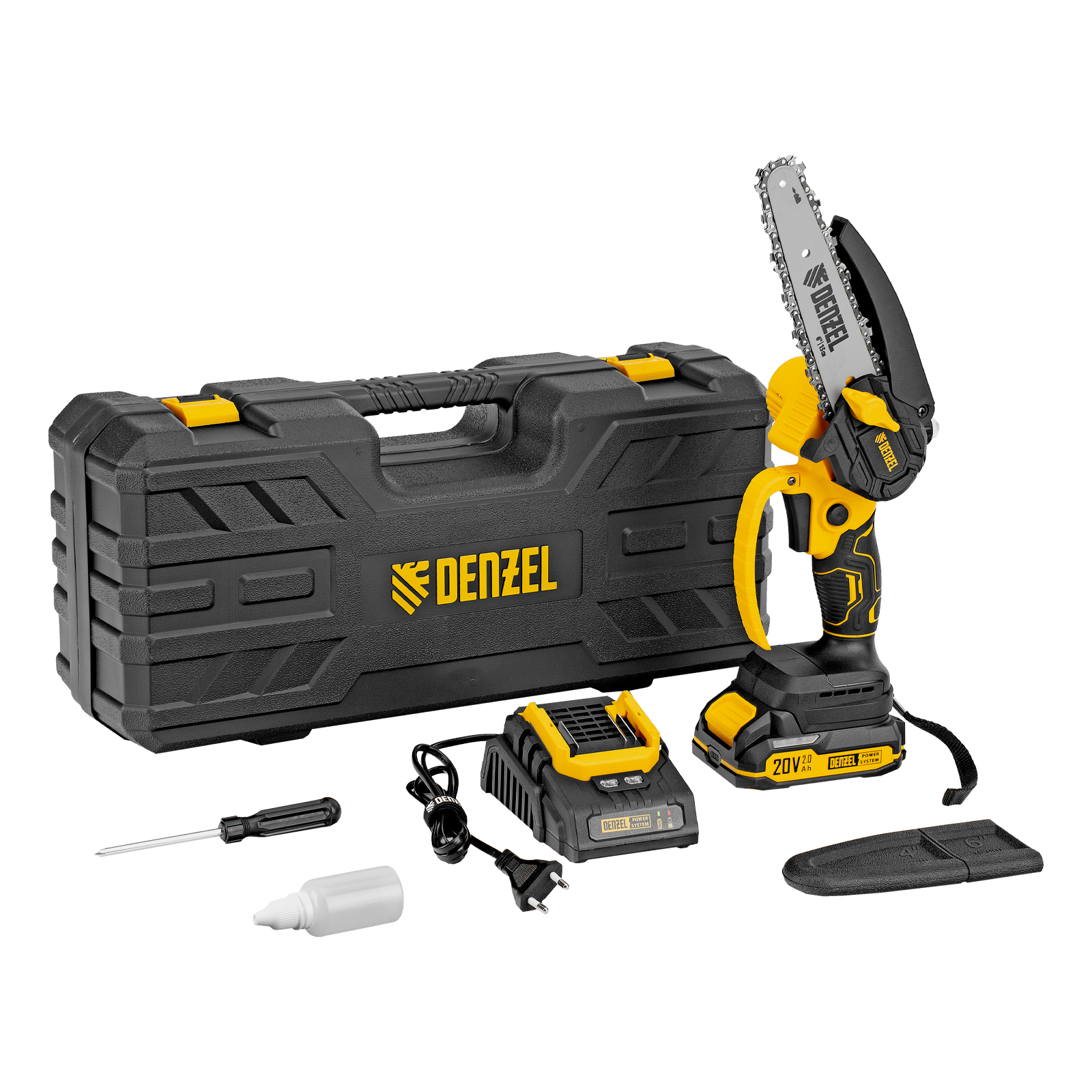 Цепная мини-пила аккумуляторная бесщет., CCS-150, шина 150 мм, Li-Ion, 20 В Denzel в Москве