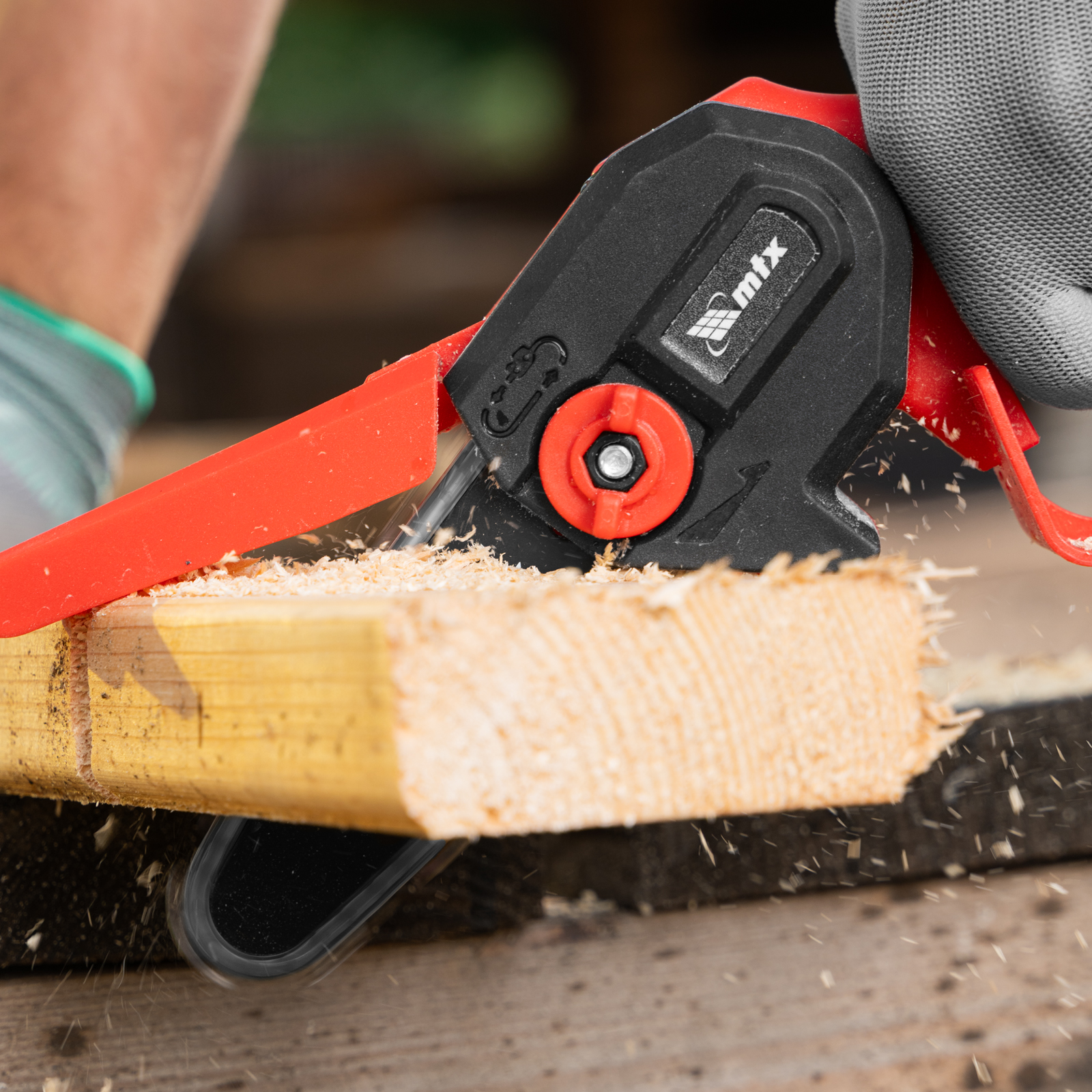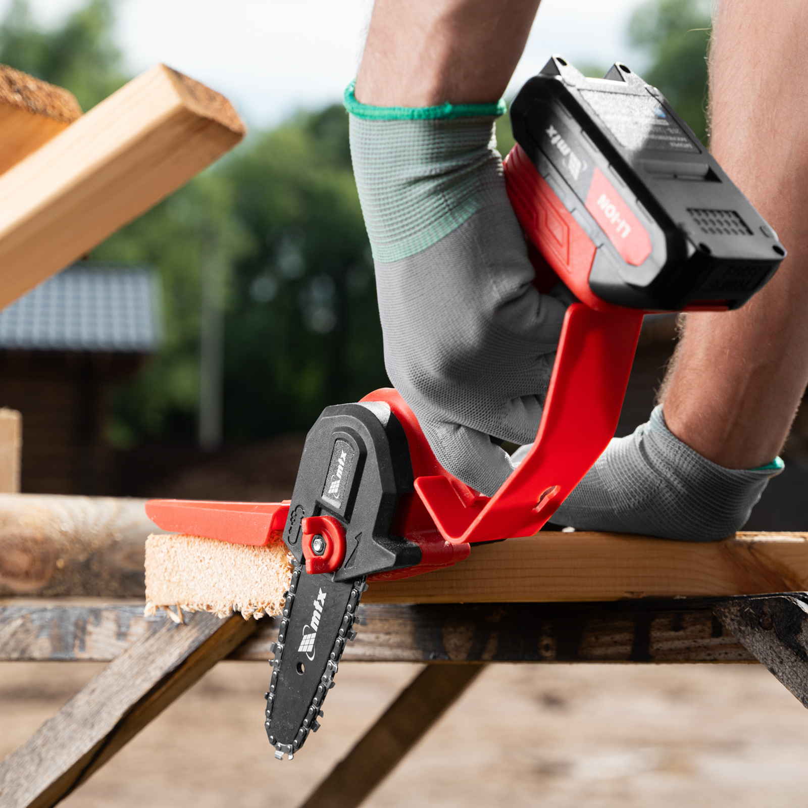 Аккумуляторная цепная мини-пила MTX MCS-100 58640 с шиной длиной 100 мм предназначена для отпиливания веток и сучков, а также пиления бруса толщиной до 100 мм. Работает от аккумулятора Li-Ion 20 В емкостью 2 А·ч, пригодится для работы на садовом участке и в мастерской, также пилу удобно брать на выездные работы.