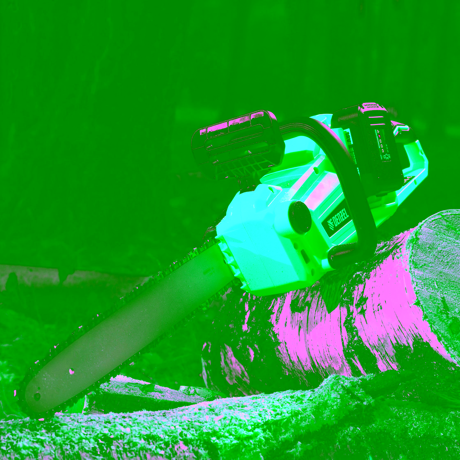 продольное расположение двигателя_работает от двух батарей 18В одновременно