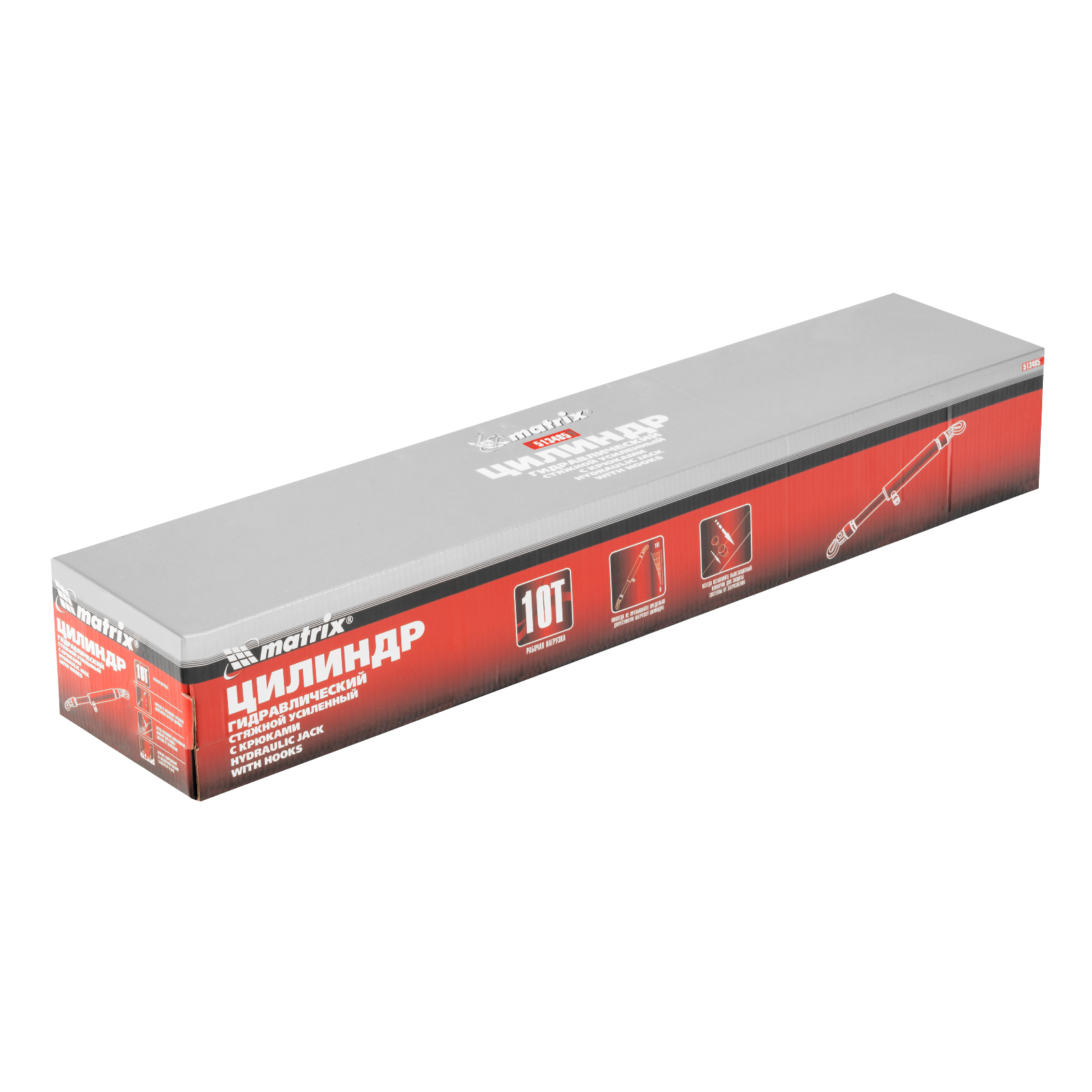 Цилиндр гидравлический, 10 т, стяжной усиленный с крюками Matrix в Москве