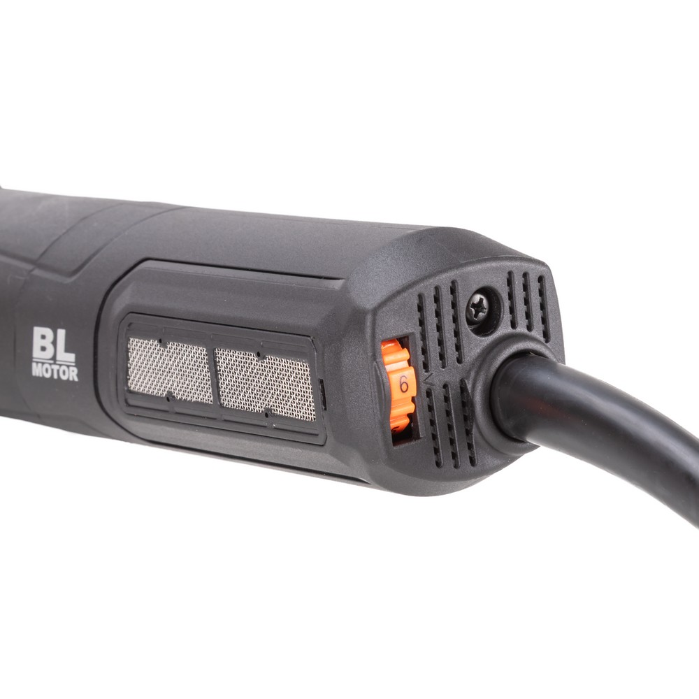 Угловая шлифовальная машина с бесщёточным электромотором Industrial AG 125/1450 XE — это профессиональный инструмент для промышленных предприятий и домашних работ, предназначенный для сухой резки, шлифования и зачистки металлических изделий и профилей различной формы, кромок и сварных швов, камня, пластика и прочих материалов, а также для браширования древесины при условии установки соответствующей оснастки. Противоскользящее покрытие корпуса, пылезащита двигателя, антивибрационная рукоятка, поворотный редуктор на 90/180/270 градусов, быстросъёмный защитный кожух – в конструкции этой модели предусмотрено всё для максимального удобства эксплуатации. Модель Industrial AG 125/1450 XE прекрасно подходит для использования как в промышленных областях (при строительстве, на производстве, в авторемонтной практике и т.д.), так и в быту.БЕСЩЁТОЧНЫЙ ЭЛЕКТРОМОТОР: Новый мощный и надёжный бесщёточный электромотор оборудован статором с медной обмоткой, ротором с мощными неодимовыми магнитами и электронной системой управления. Компактный и лёгкий бесщёточный электромотор обеспечивает высокий крутящий момент, увеличивает износостойкость, КПД и срок службы инструмента, не требует обслуживания.ПЛАВНЫЙ СТАРТ: Плавный пуск снижает нагрузку на приводной ремень, подшипники и редуктор, ограничивает пусковые токи и продлевает срок эксплуатации оборудования.СИСТЕМА СТАБИЛИЗАЦИИ ОБОРОТОВ: Электронная плата сохраняет число оборотов постоянным, вне зависимости от изменения уровня нагрузки.ЗАЩИТА ОТ ПЕРЕГРУЗКИ: При чрезмерных нагрузках оборудование отключится автоматически, предотвратив преждевременный выход из строя аккумулятора и повреждение деталей шлифовальной машинки.ЗАЩИТА ОТ ПЕРЕГРЕВА: Система автоматически отключает двигатель при заклинивании диска. Эффективная система охлаждения защищает двигатель от перегрева и повышает его долговечность.ПРЕИМУЩЕСТВА:Высокая мощность 1450 ВтБесщёточный моторТонкий обхват рукоятки (диаметр обхвата 55 мм)Высокая стойкость к перегрузкамПлавный стартПоддержание постоянных оборотов под нагрузкойЗащита от перегрузки и перегреваЭлектронная регулировка оборотовЭффективная система охлажденияСтатор с медной обмоткойБлокировка от случайного включения напряженияЗапрессованная шестеренка на валу редуктораВысокоресурсные подшипники NSKВибропоглощающее кольцо на ротореБлокировка шпинделяВыключатель с блокировкой от случайного включенияПоворотный редуктор на 90/180/270 градусовЗащитные решётки на вентиляционных окнах двигателяПротивоскользящее покрытие корпусаАнтивибрационная боковая рукоятка2 положения рукоятки на редуктореБыстросъёмный защитный кожухМорозостойкий кабельРабота по бетону (камню)ФУНКЦИОНАЛЬНЫЕ ОСОБЕННОСТИ:РЕГУЛИРОВКА ОБОРОТОВ: Электронная регулировка оборотов (6 скоростей) позволяет оптимально настроить скорость для обработки различных по плотности материалов.ЗАЩИТА ОТ СЛУЧАЙНОГО ВКЛЮЧЕНИЯ: Блокировка от случайного включения напряжения предотвращает непреднамеренный запуск подключённого к электросети инструмента при аварийном отключении и внезапном включении электричества.ПОВОРОТНЫЙ РЕДУКТОР НА 90/180/270°: Для комфортной работы в сложных условиях и для удобства оператора можно изменять положение кнопки пуска, редуктора и рукоятки под левую руку.БЫСТРОСЪЕМНЫЙ ЗАЩИТНЫЙ КО