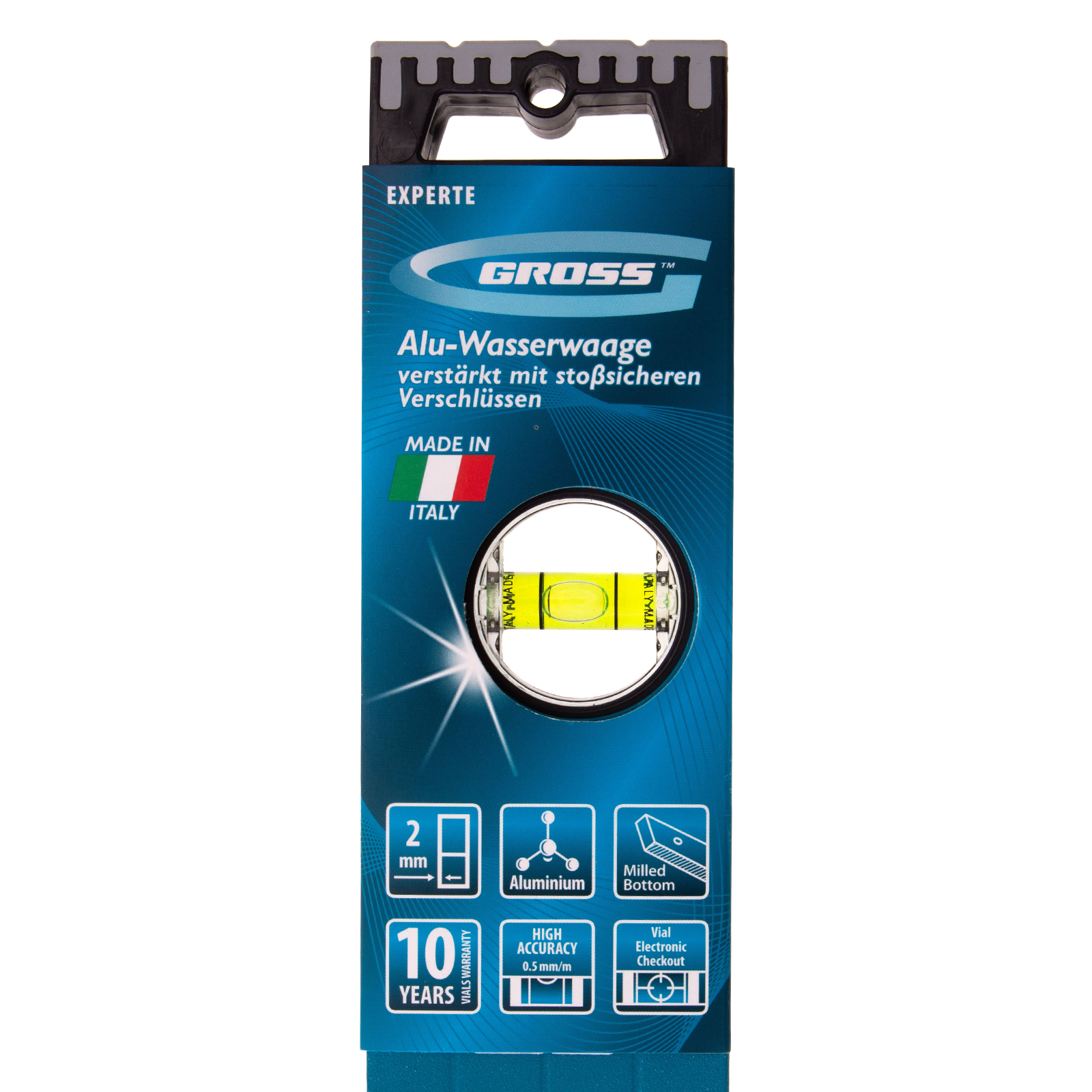 Усиленный алюминиевый уровень Gross 34330 длиной 1000 мм, с ударопрочными заглушками, рукоятками и 3 глазками, — универсальный инструмент для решения профессиональных задач на строительной площадке. Благодаря ему можно выровнять поверхности относительно горизонтали и вертикали или проверить соответствие углу 45 градусов.