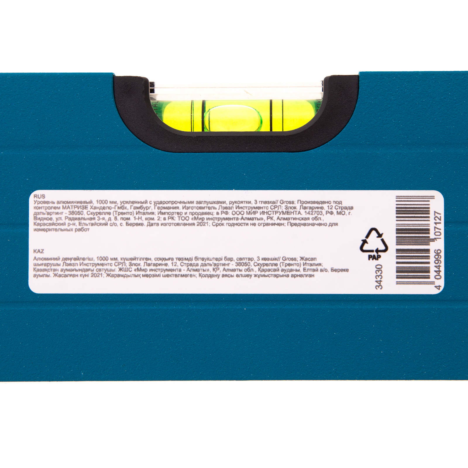 Уровень алюминиевый, 1000 мм, усиленный с ударопрочными заглушками, рукоятки, 3 глазка Gross в Москве