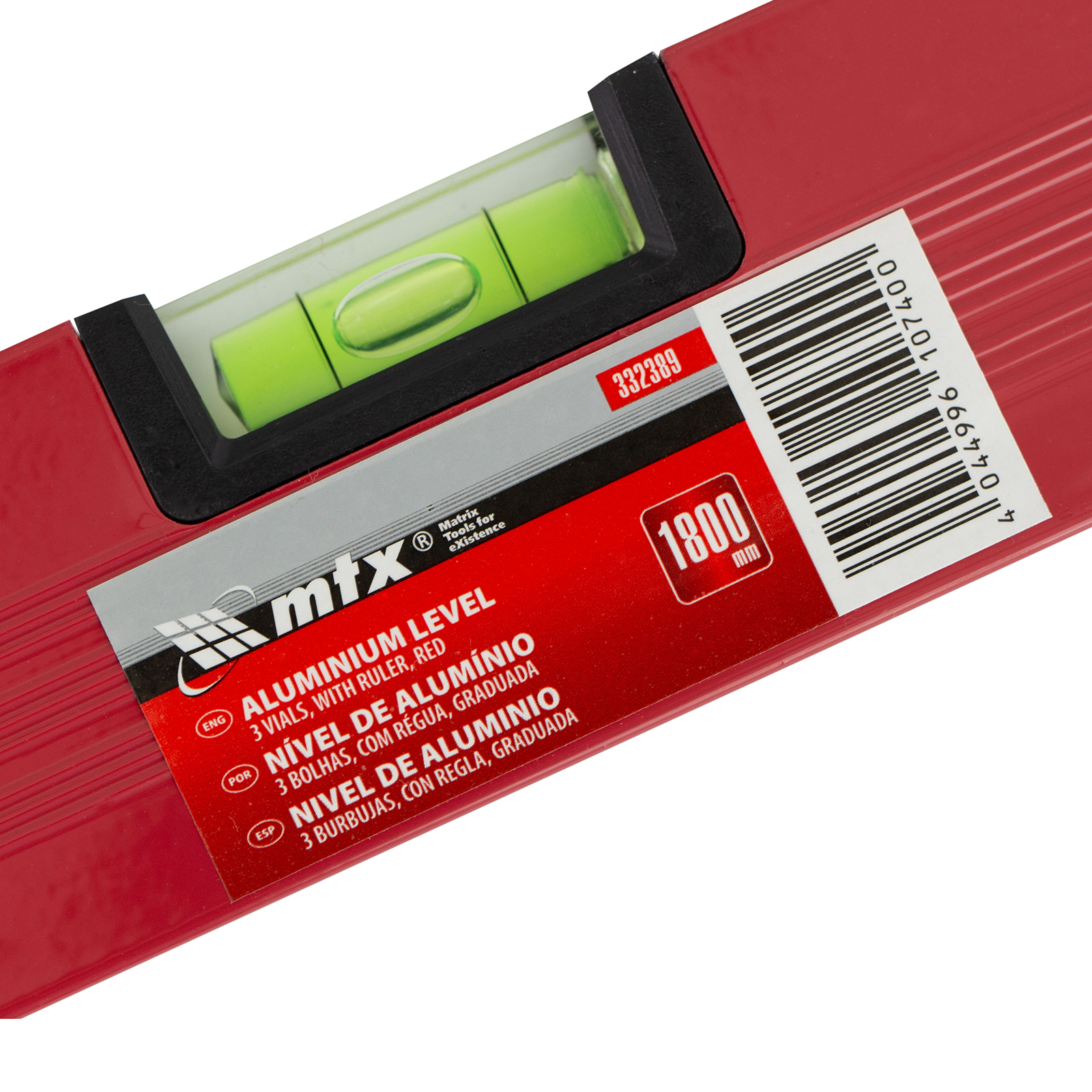Красный алюминиевый уровень MTX 33238 длиной 1800 мм, с 3 глазками и линейкой, обеспечивает точность выполнения строительных, ремонтных и монтажных работ. Три колбы позволяют проверять отклонение по горизонтали, вертикали и под углом 45 градусов, погрешность составляет 1 мм/м (0,057 градуса).