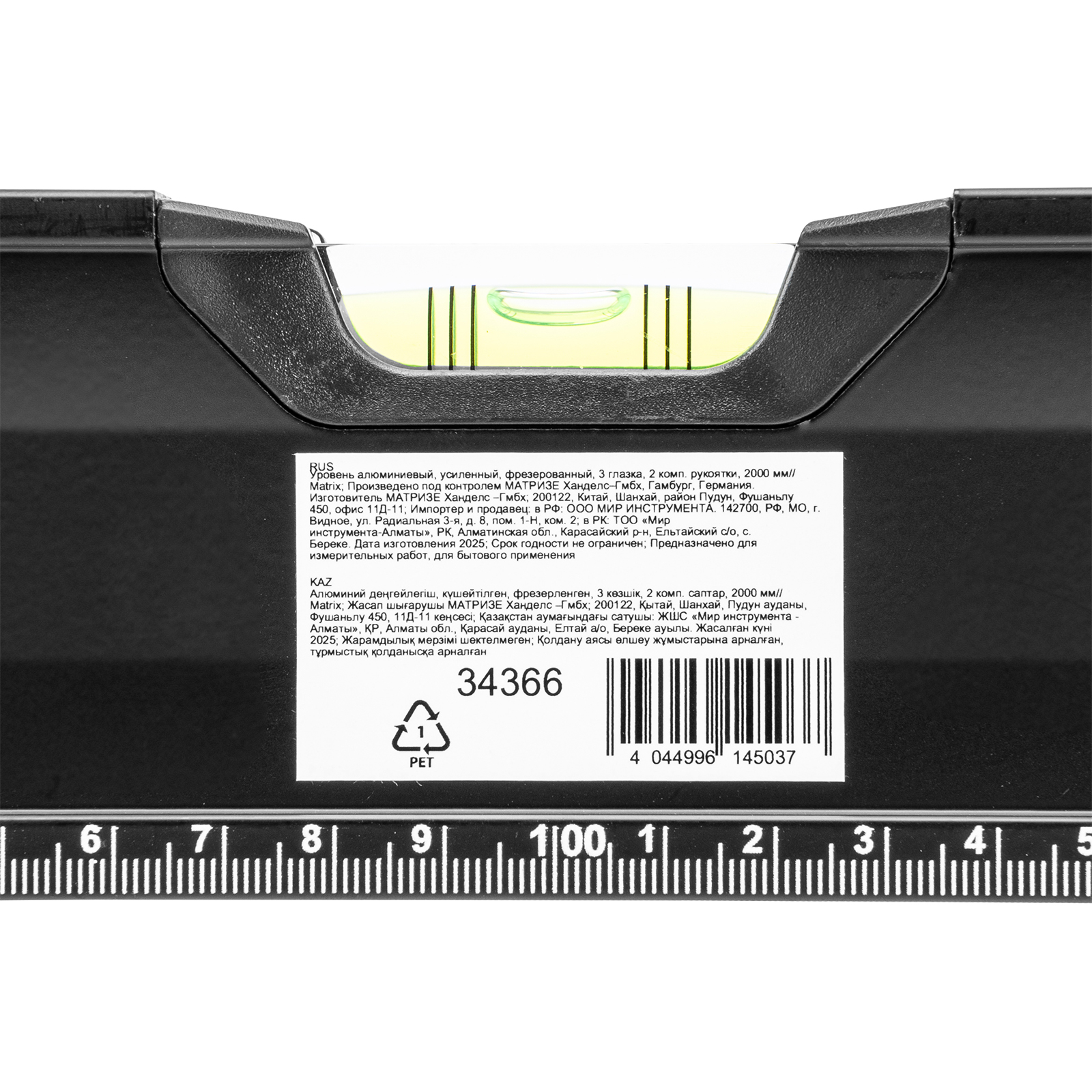 Уровень алюминиевый, усиленный, фрезерованный, 3 глазка, двухкомпонентные рукоятки, 2000 мм Matrix в Москве