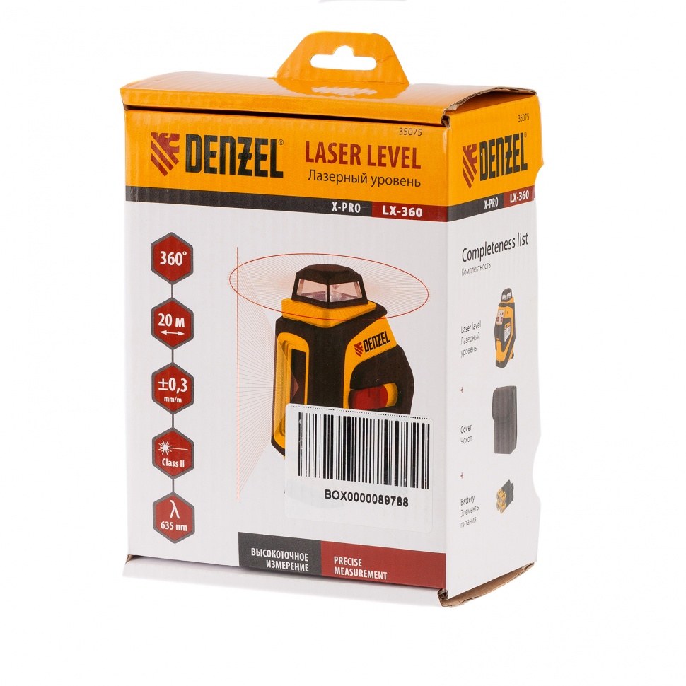 Лазерный уровень LX360, 20 м, ± 0,3 мм/1 м, горизонтальная и вертикальная плоскости, 360 град, 635 нм, резьба 1/4 Denzel в Москве