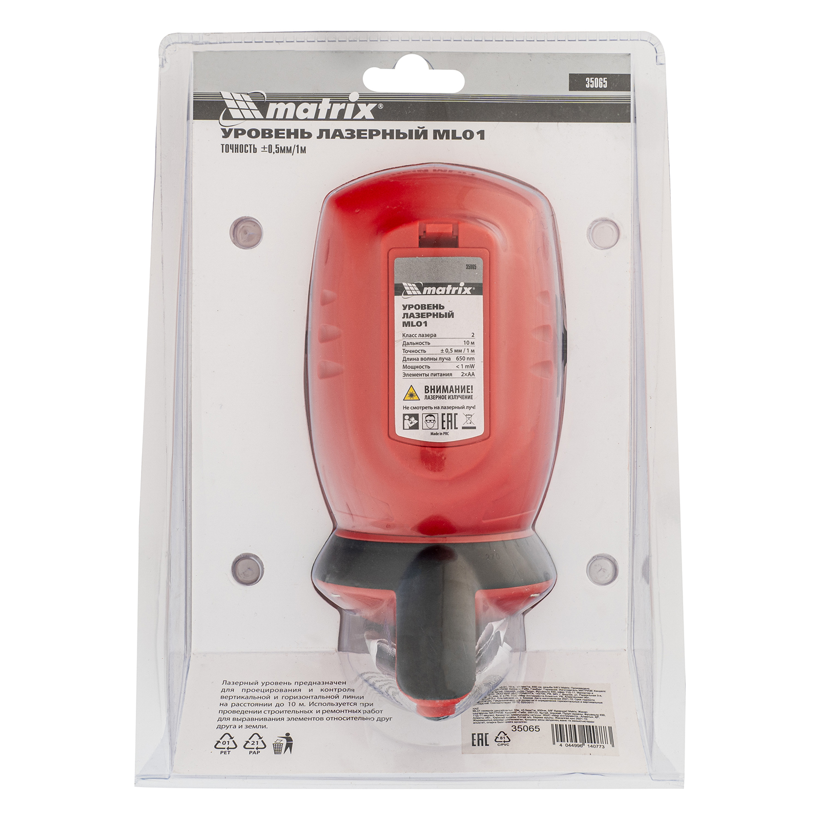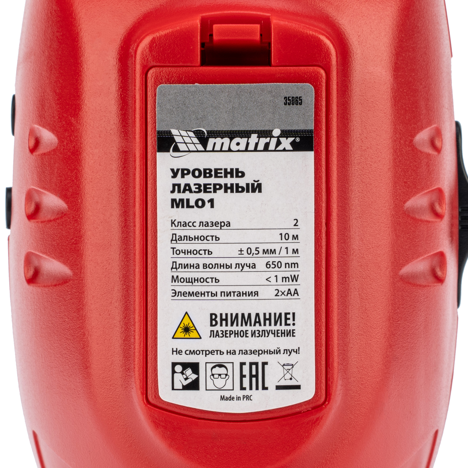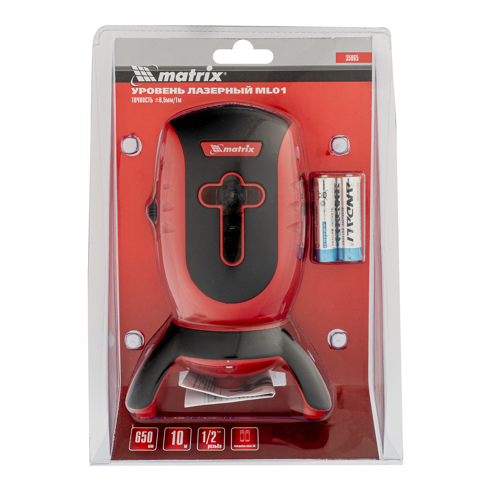 Лазерный уровень ML01T, дальность 10 м, точность ± 0,5 мм, / 1 м, длина волны 650 нм, проекция 1 вертикальная 1 горизонтальная плоскость, резьба под штатив 5/8" Matrix в Москве
