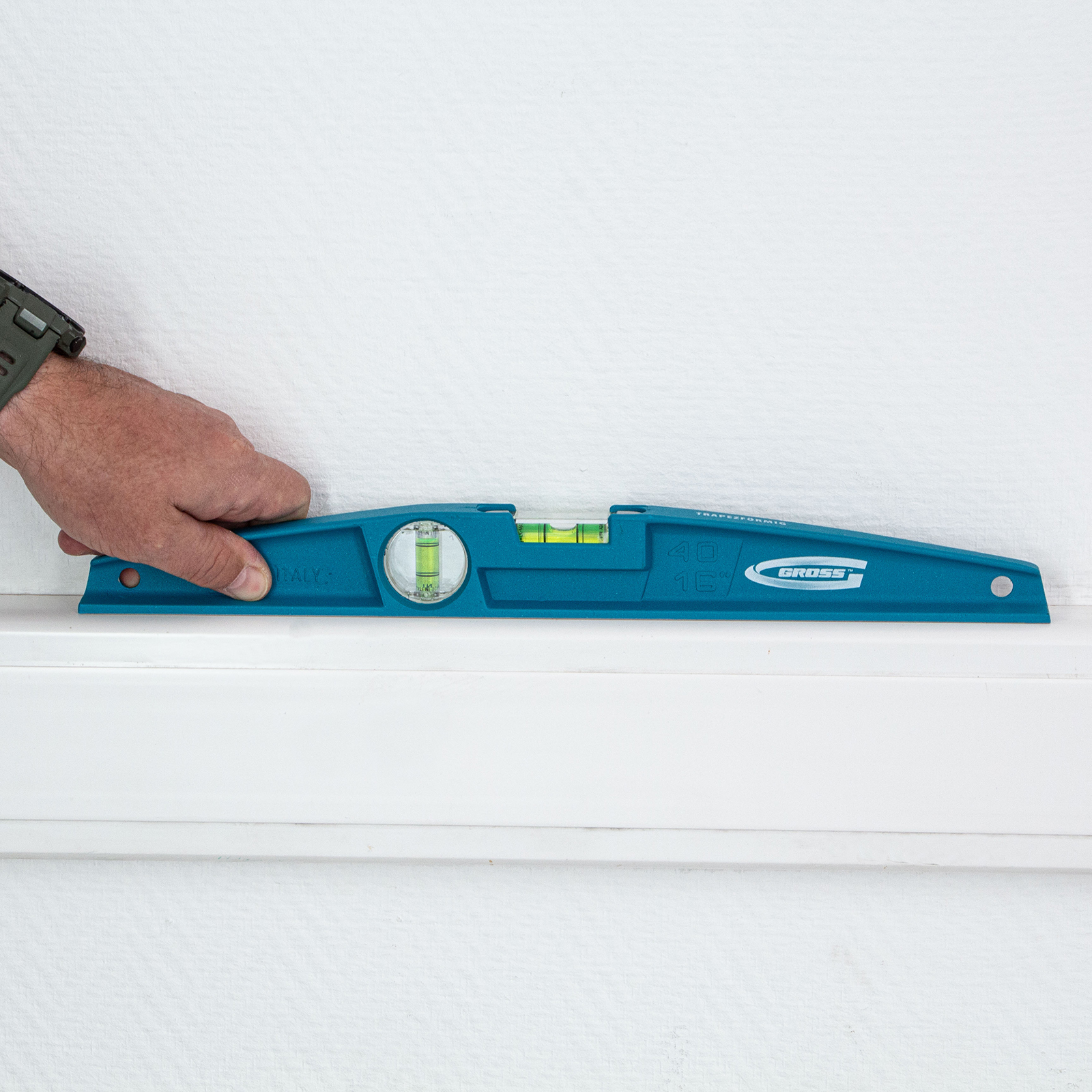 Литой уровень Gross 34914 длиной 400 мм снабжен 2 глазками для построения вертикали и горизонтали. Инструмент оптимально подходит для использования при укладке напольной и настенной плитки, кирпичной кладки, брусчатки и т.д.