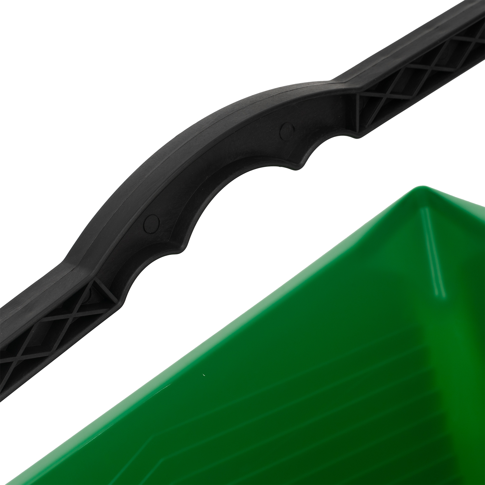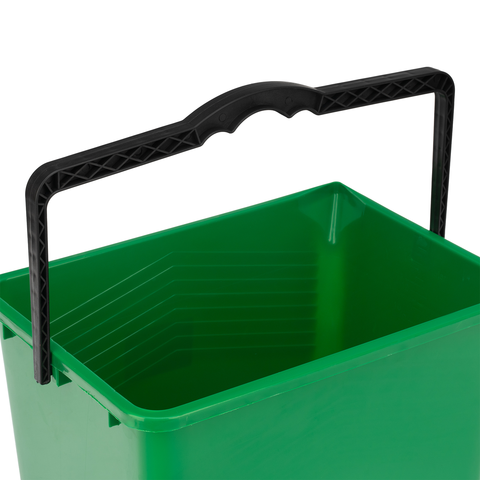 - Комфортная работа — прямоугольная форма ведра облегчает погружение валика, а рельефные полосы на внутренних стенках помогают удалять излишки краски с инструмента.