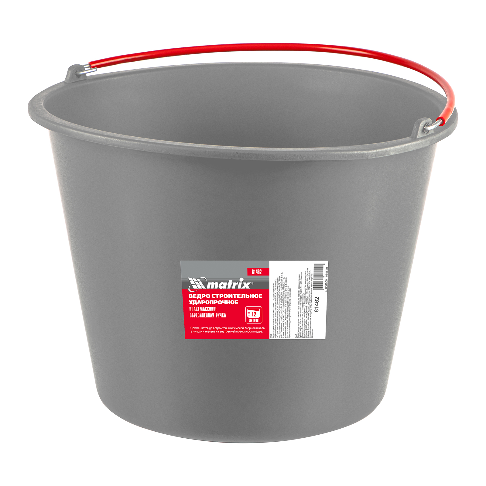 Ведро строительное пластмассовое 12 л, ударопрочное, обрезиненная ручка Matrix в Москве