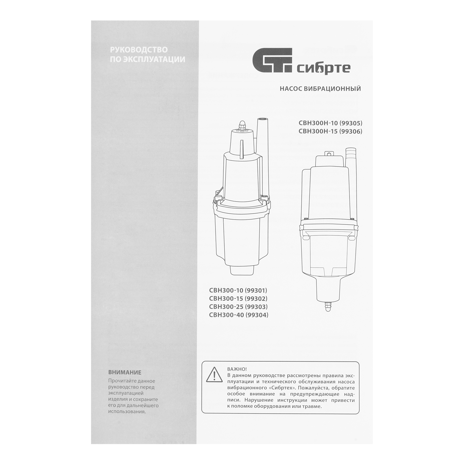 Вибрационный насос СВН300-15, верхний забор, 300 Вт, напор 75 м, 1200 л/ч, кабель 15 м Сибртех в Москве