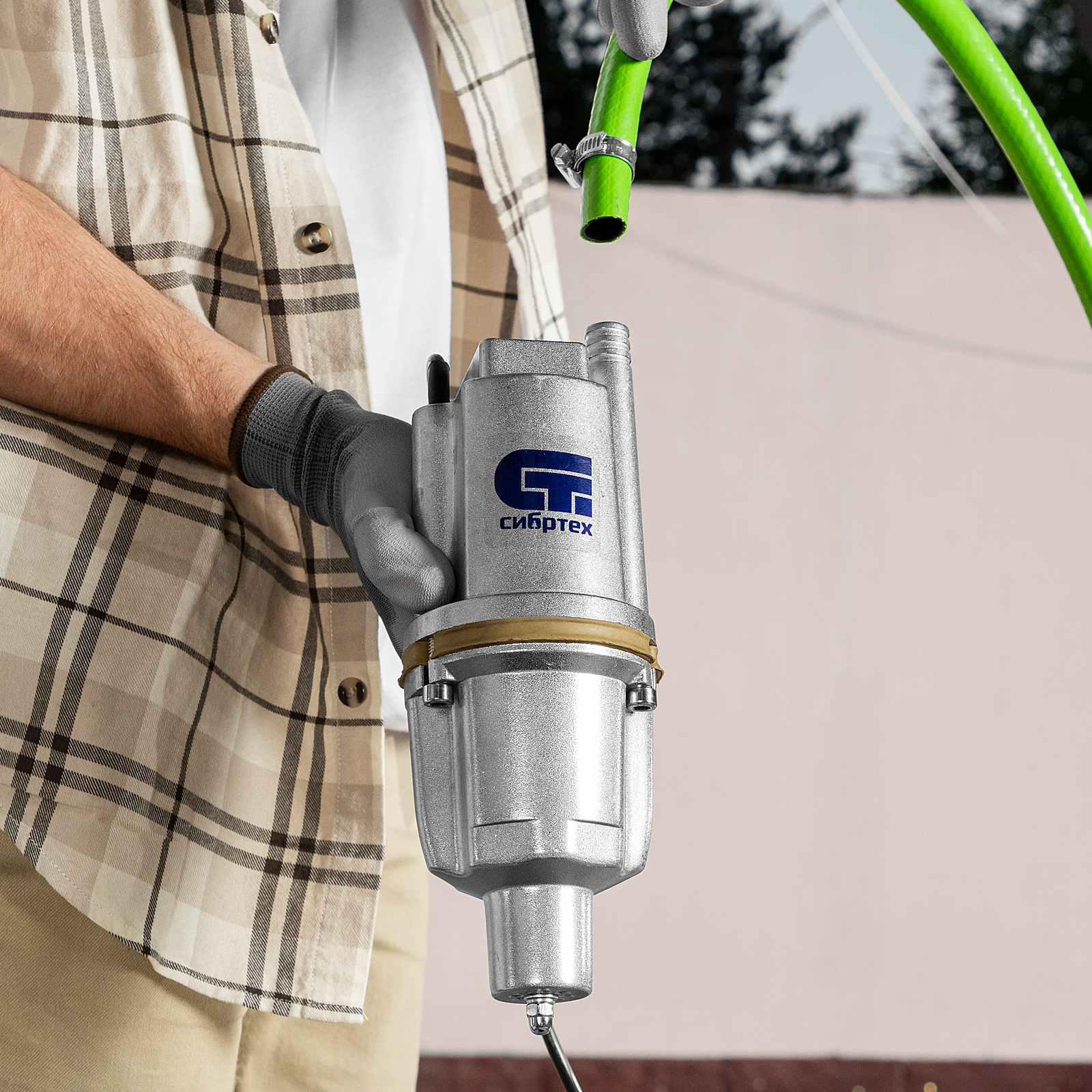 Вибрационный насос Сибртех СВН300Н-10 99305 с кабелем 10 м и нижним забором жидкости имеет мощность 300 Вт и производительность до 1200 л/ч, обеспечивает напор до 75 м и предназначен для перекачивания чистой воды из колодцев и скважин диаметром от 10 см на глубине погружения до 5 м. Также может осуществлять забор воды из водоемов, резервуаров, затопленных помещений. Его используют в системах орошения садов и огородов или для организации водоснабжения на даче.