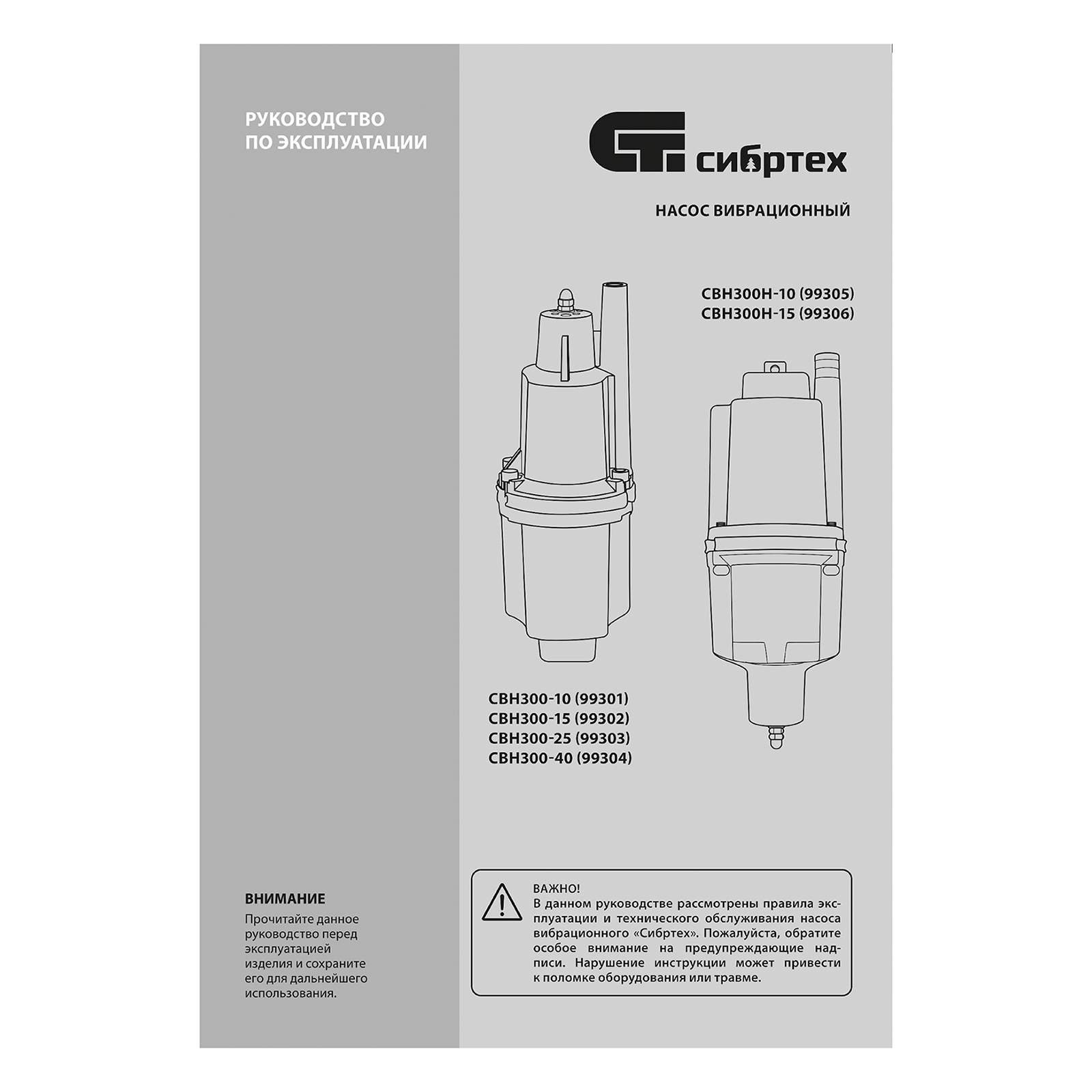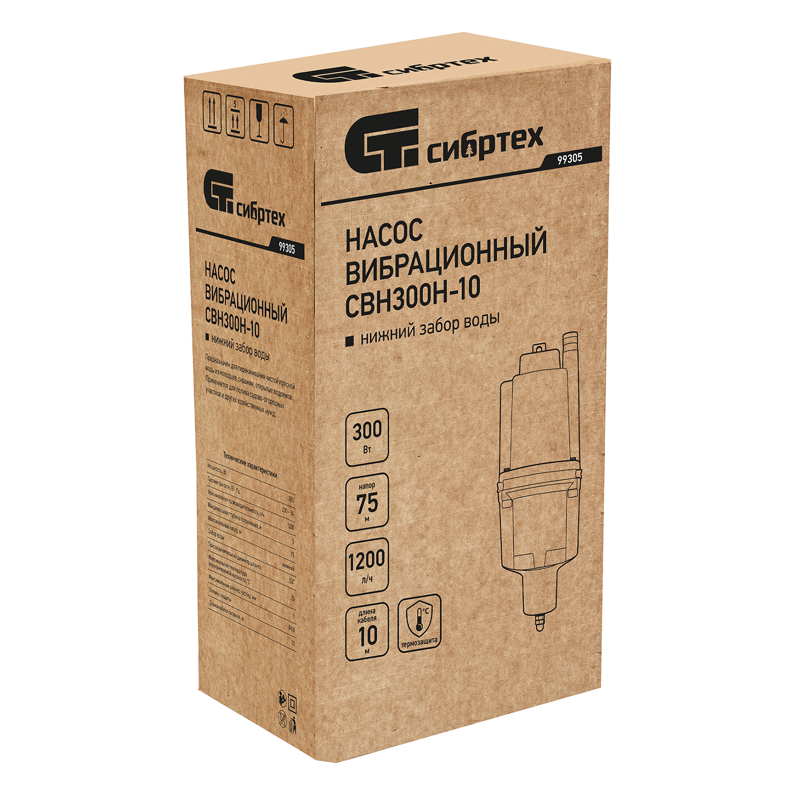 Вибрационный насос СВН300Н-10, нижний забор, 300 Вт, напор 75 м, 1200 л/ч, кабель 10 м Сибртех в Москве