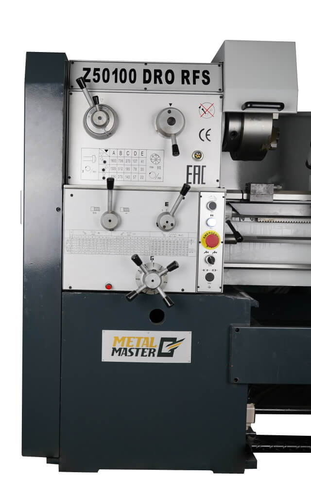 Универсальный токарно-винторезный станок Z50100 DRO RFS используется для работы с заготовками из конструкционных материалов. С помощью станка также можно нарезать метрические, дюймовые, модульные и питчевые резьбы. В стандартную комплектацию станка входят: система подачи СОЖ, станочный светильник местного освещения, подвижный и неподвижный люнеты. Модель обладает удобной эргономикой управления.