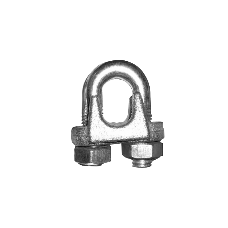 Зажим для каната – это крепежный элемент, который используется для соединения стальных канатов, для создания концевых соединений (петель). Деталь имеет подковообразную форму, на обоих концах нанесена резьба. Для крепления используются шестигранные гайки. Материал изготовления – оцинкованная высокопрочная сталь. Усиленные зажимы более прочные, их используют на грузоподъемном оборудовании. Рекомендуется использовать не меньше трех зажимов в одном соединении.