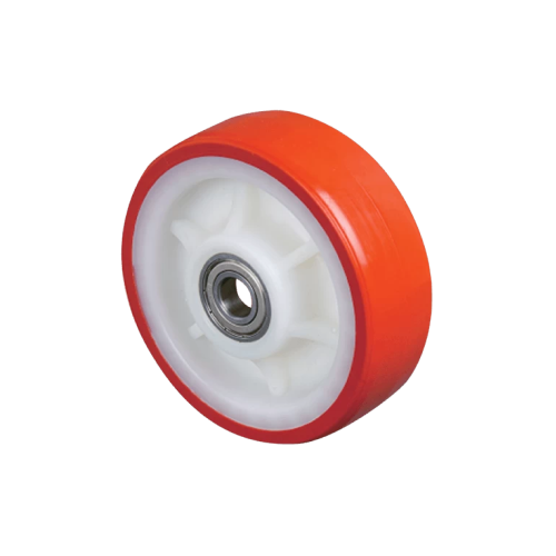Данное большегрузное колесо подходит для установки на платформенные тележки, передвижное большегрузное оборудование. Материал изготовления обода — нейлон. Прочная полиуретановая шинка устойчива к истиранию. Рабочий температурный диапазон — от -20 до +70 °С, максимальная грузоподъемность — 550 кг.